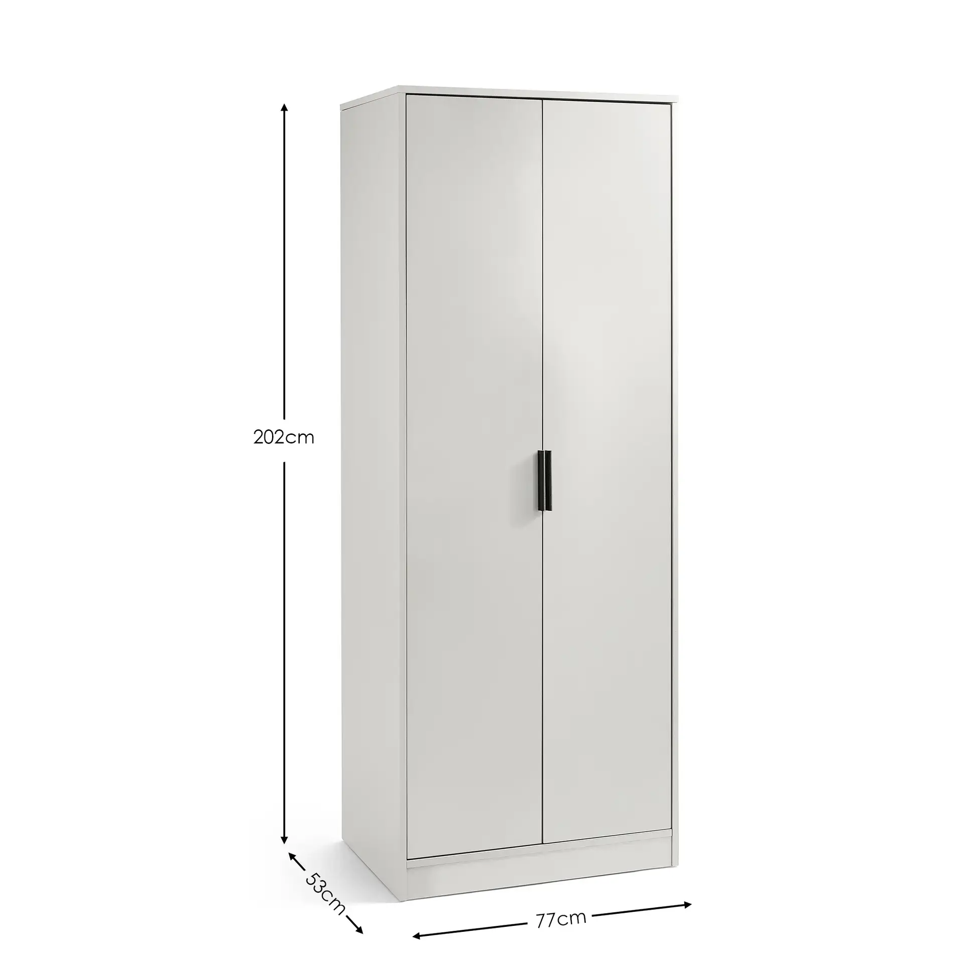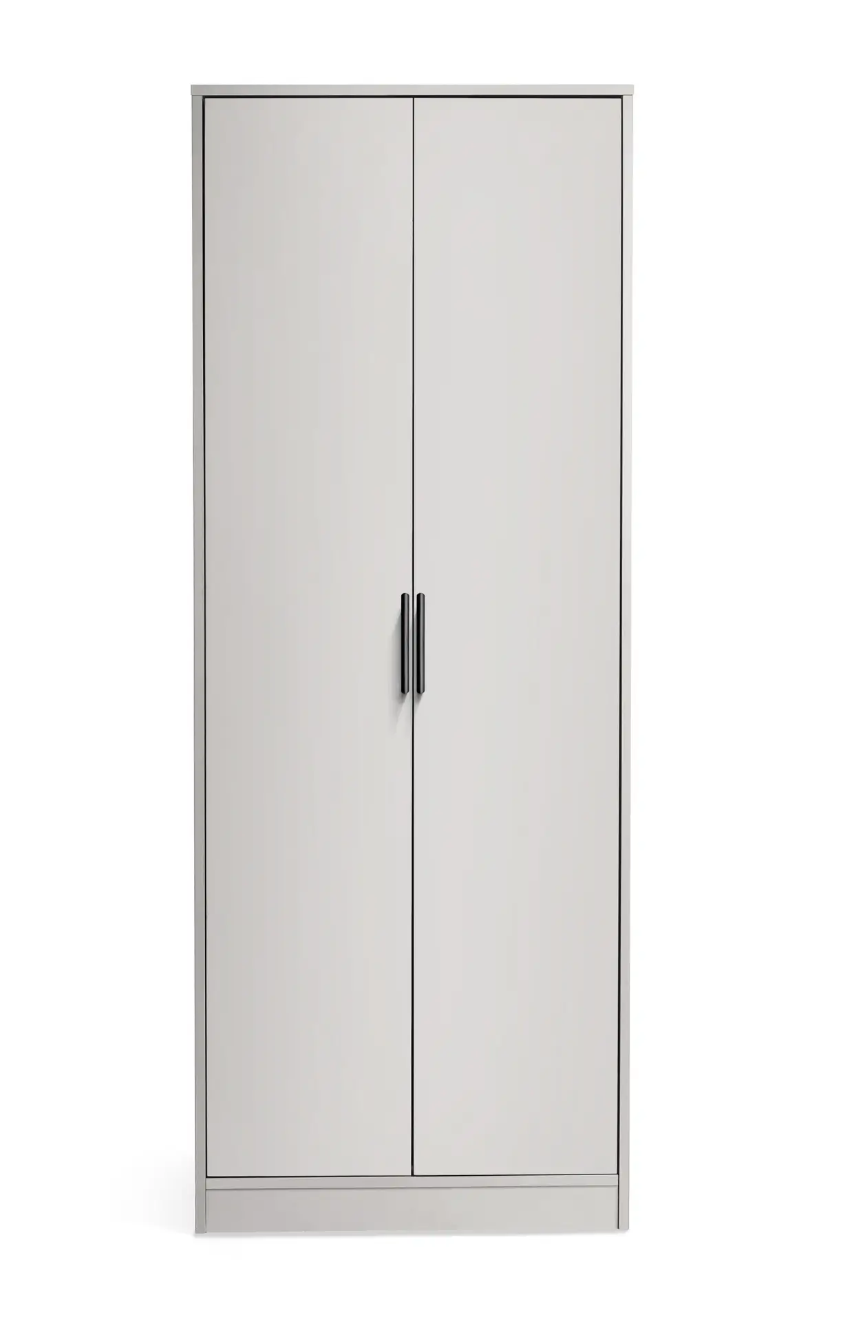 The Alba 2 Door Wardrobe in Silk Grey offers a sleek, contemporary storage solution for your bedroom. The soft grey finish exudes understated elegance, while the black handles provide a striking contrast for a modern, sophisticated look. Inside, the wardrobe offers ample space to keep your clothing and accessories organised, featuring a full-length hanging rail and spacious shelves.
