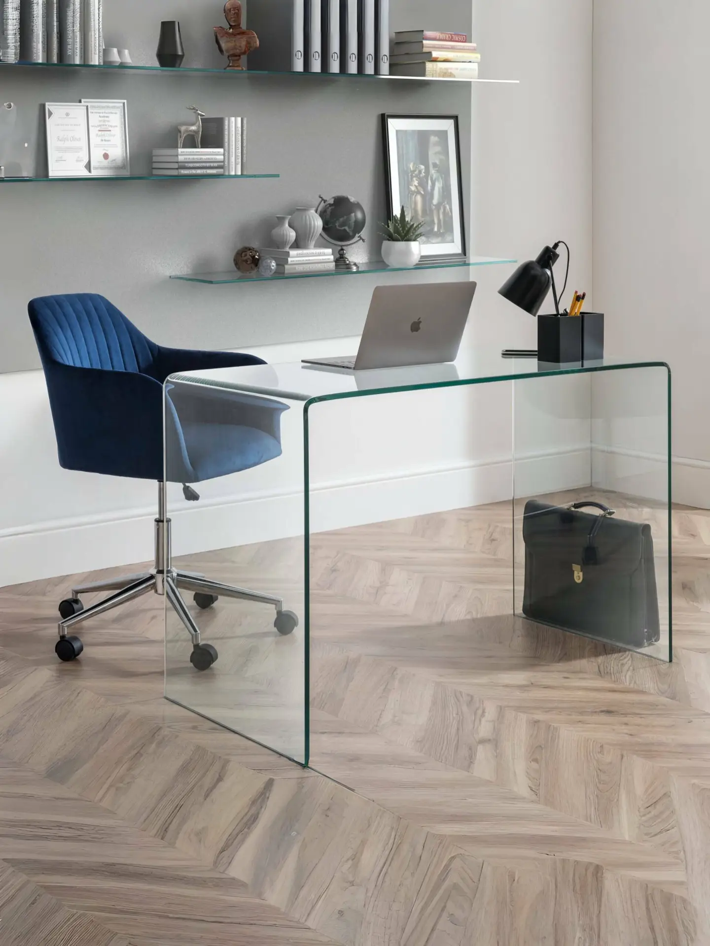 This Amalfi bent glass desk is beautifully crafted from a single sheet of tempered glass, bent and moulded into a curvaceous design with no joins or fixings. From a collection of three pieces, the Julian Bowen Amalfi clear glass range will create the feeling of more space in your home, whilst adding a touch of elegance.