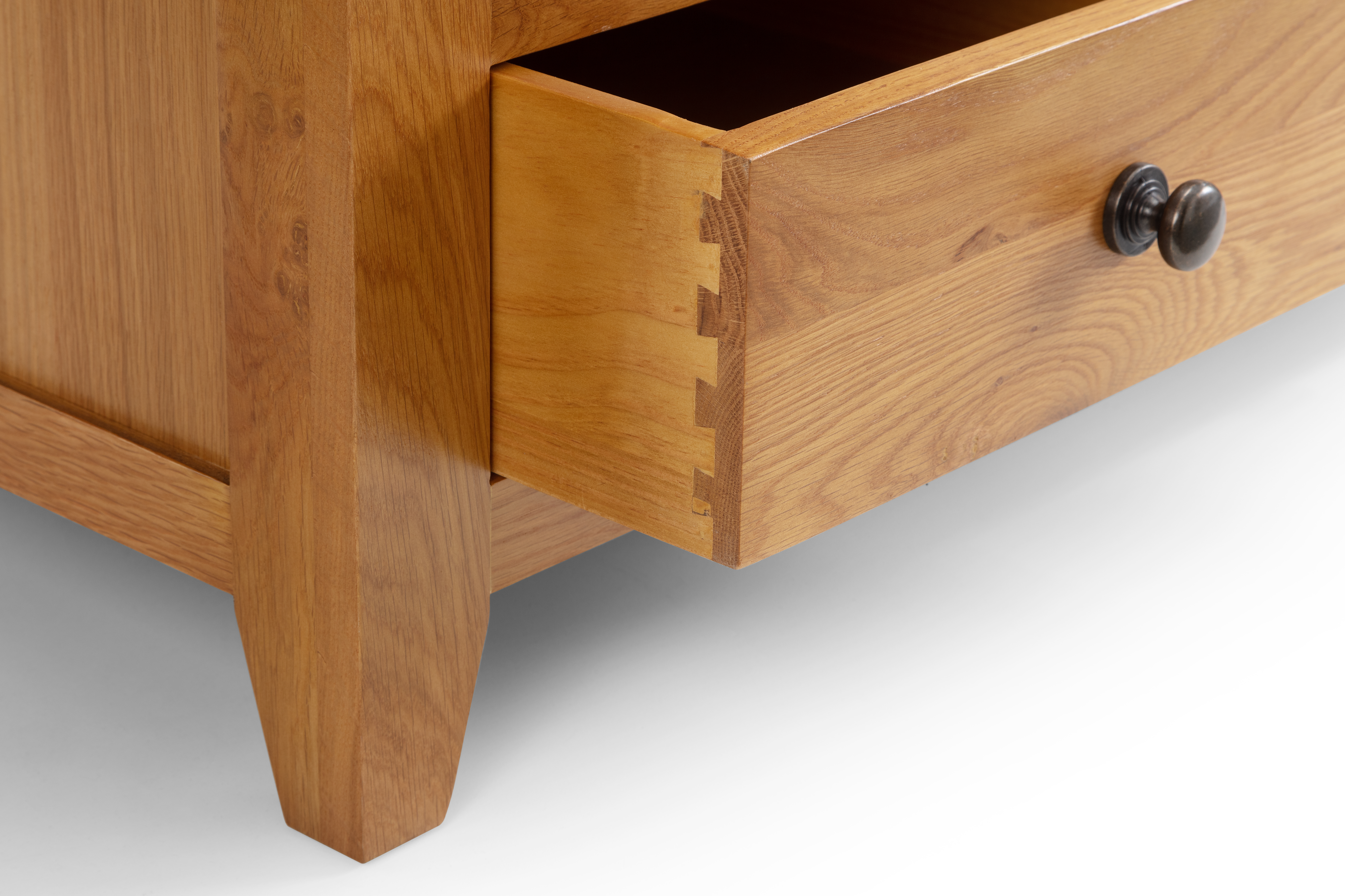 Practicality meets style with a handy storage shelf and four full-depth drawers, accessible from either side for extra convenience. Revel in the warmth and traditional feel this coffee table brings to your home, especially when paired with other coordinating furniture from the Julian Bowen Astoria range.