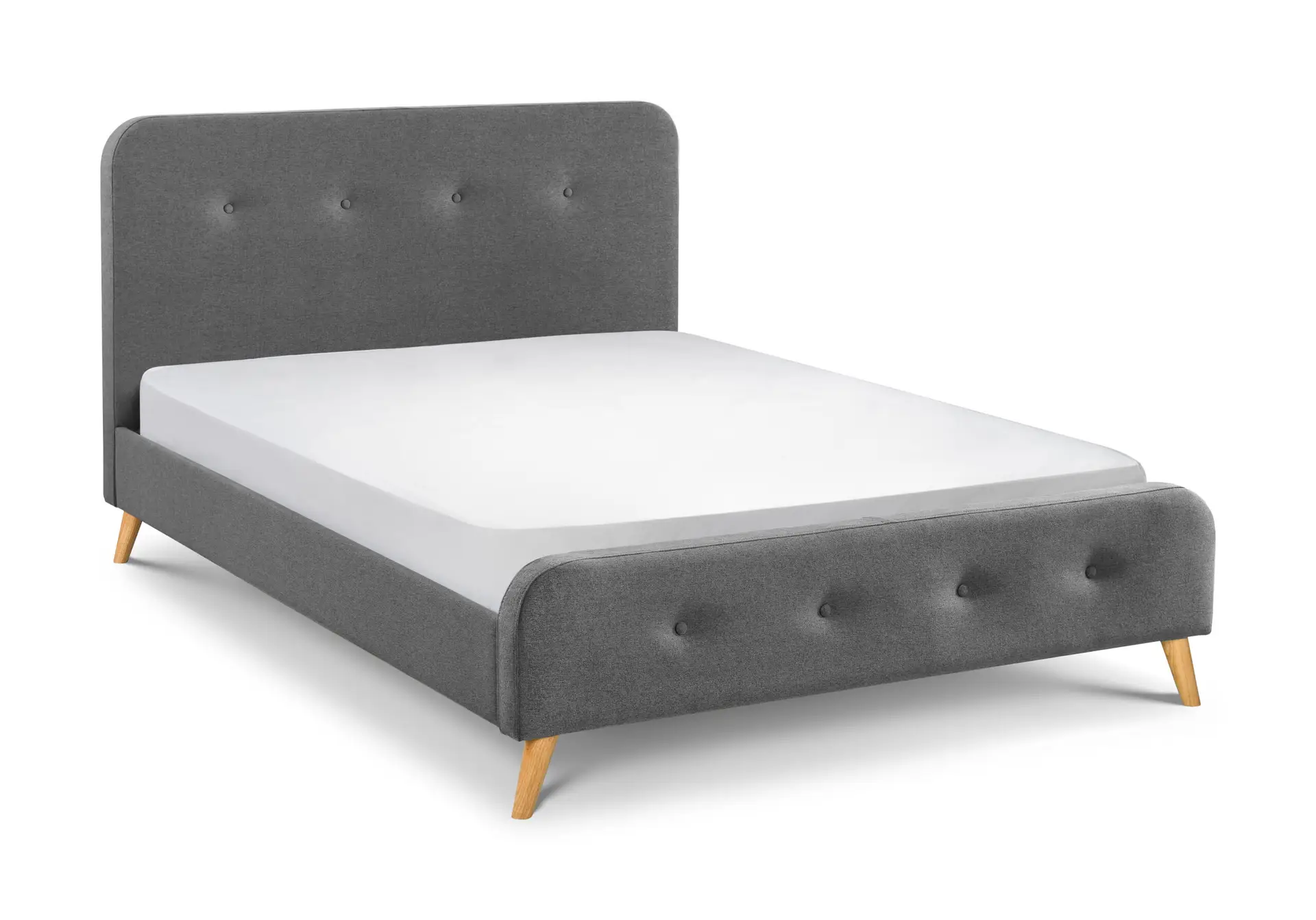 The Astrid fabric bed combines classic Scandinavian design with contemporary light oak splayed legs for a timeless style. Beautifully upholstered in a crisp grey linen with a neatly buttoned headboard, Astrid’s clean lines sit well with any contemporary decor and it is the perfect accompaniment to Julian Bowen’s stylish Alicia range of bedroom furniture range. The robust construction incorporates a sprung-slatted base to ensure a comfortable night’s sleep and prolonged mattress life.