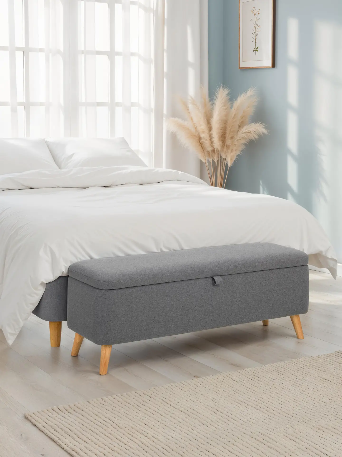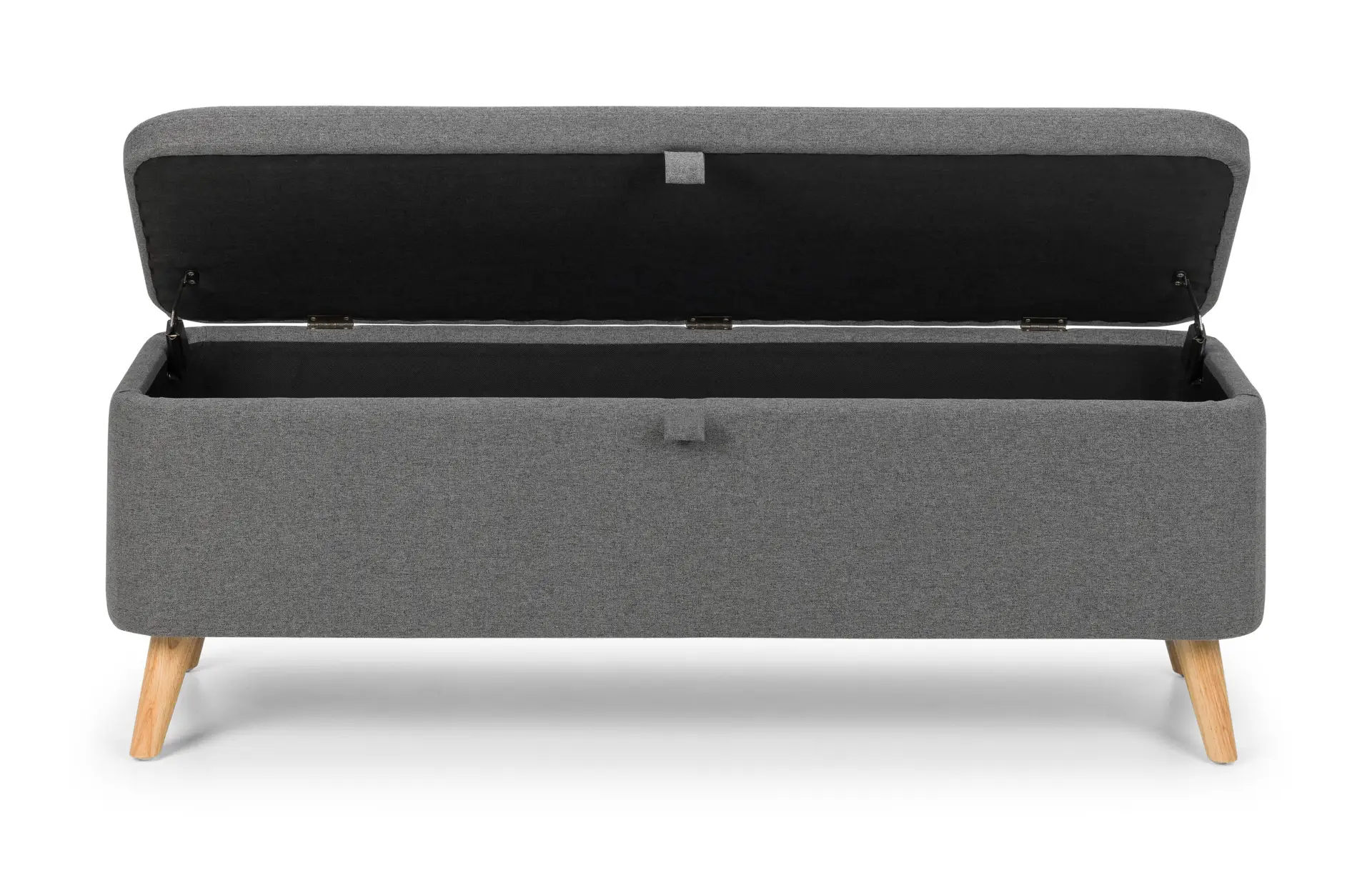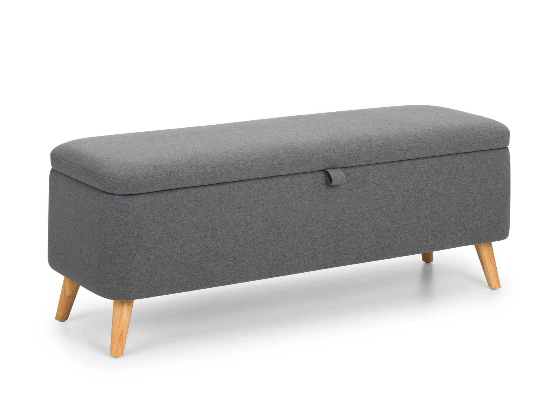 Perfectly proportioned to sit at the end of the Julian Bowen Astrid bed, this contemporary Astrid blanket box is upholstered in a crisp grey linen fabric. This contemporary, Scandinavian design fits perfectly with a wide range of bedroom décor. The perfect storage for your cushions, linens, or duvets with the ease of soft close hinges.