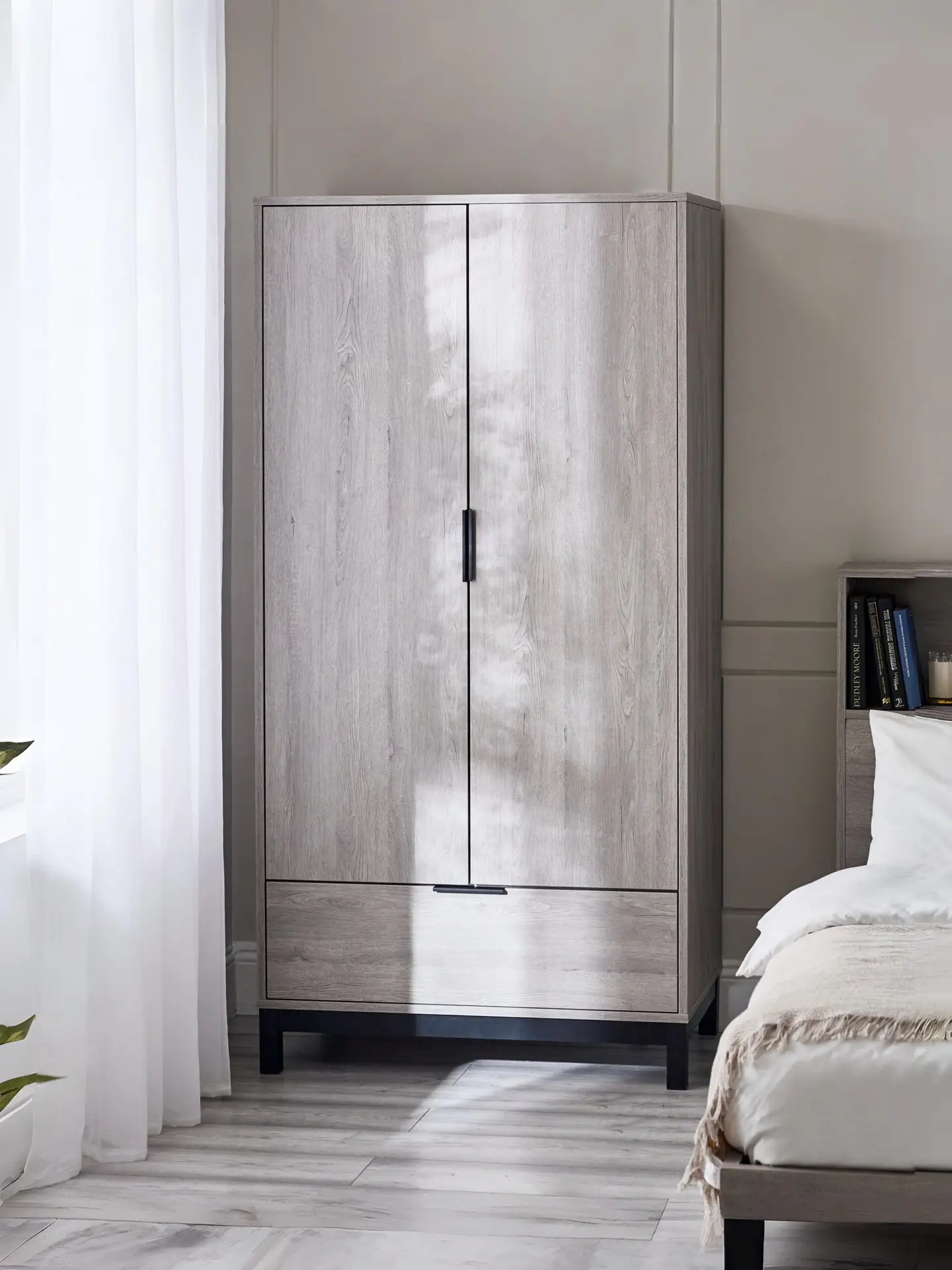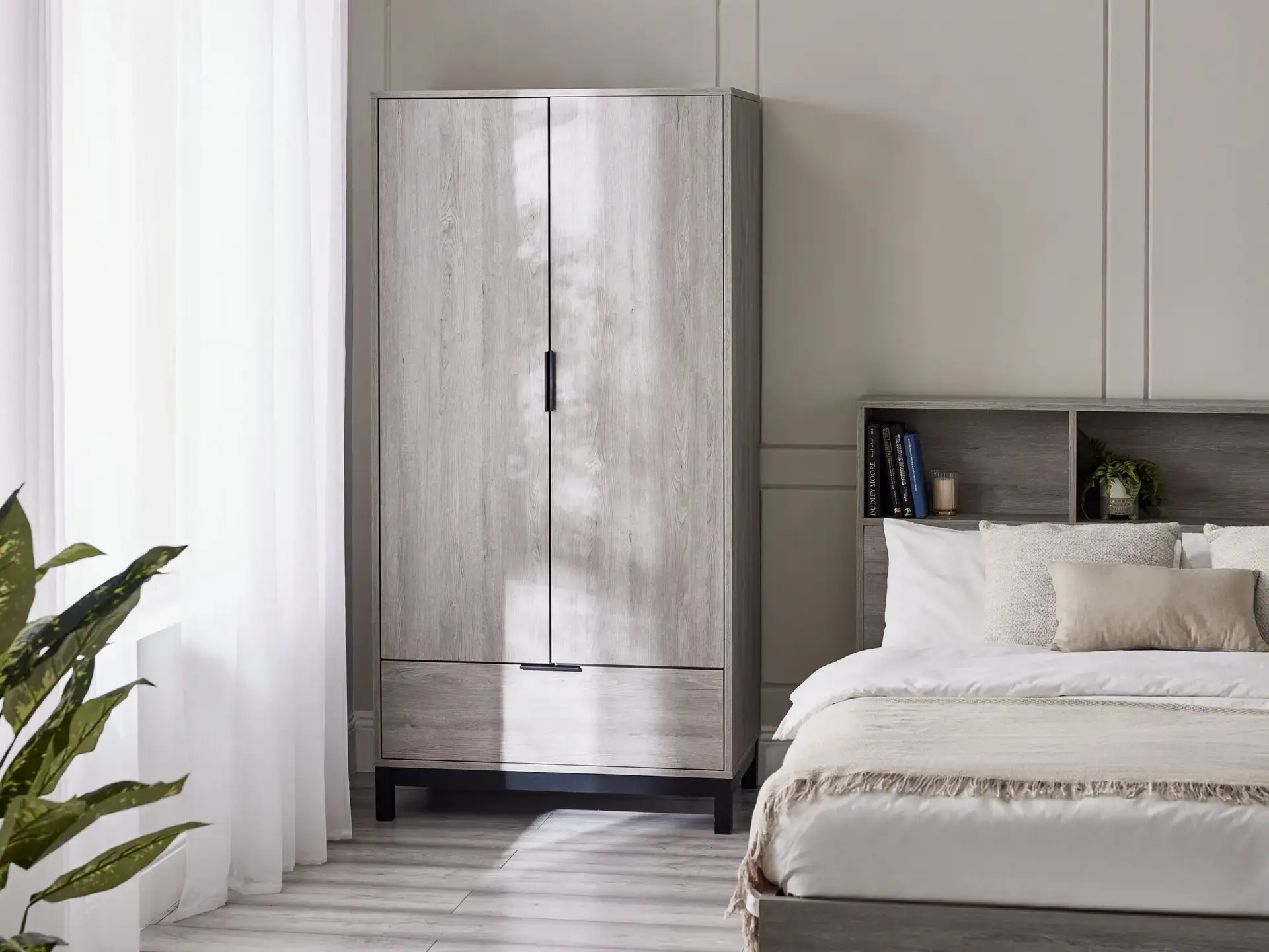 Using revolutionary click furniture technology, the Bali collection combines high quality style with simple assembly. With a modern grey oak finish and contrasting black legs and handles, the Bali collection creates a classic industrial look in your bedroom – leaving you with a high-quality interior, with low maintenance upkeep. This collection includes: 1 drawer bedside, 2 drawer bedside, 4 drawer chest, 6 drawer wide chest, dressing table/desk, wardrobe, and bookcase bed.