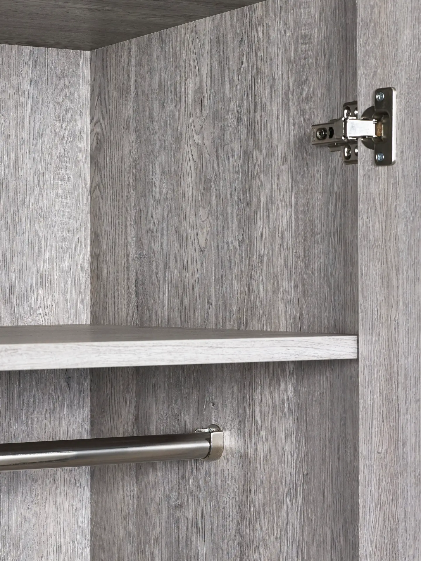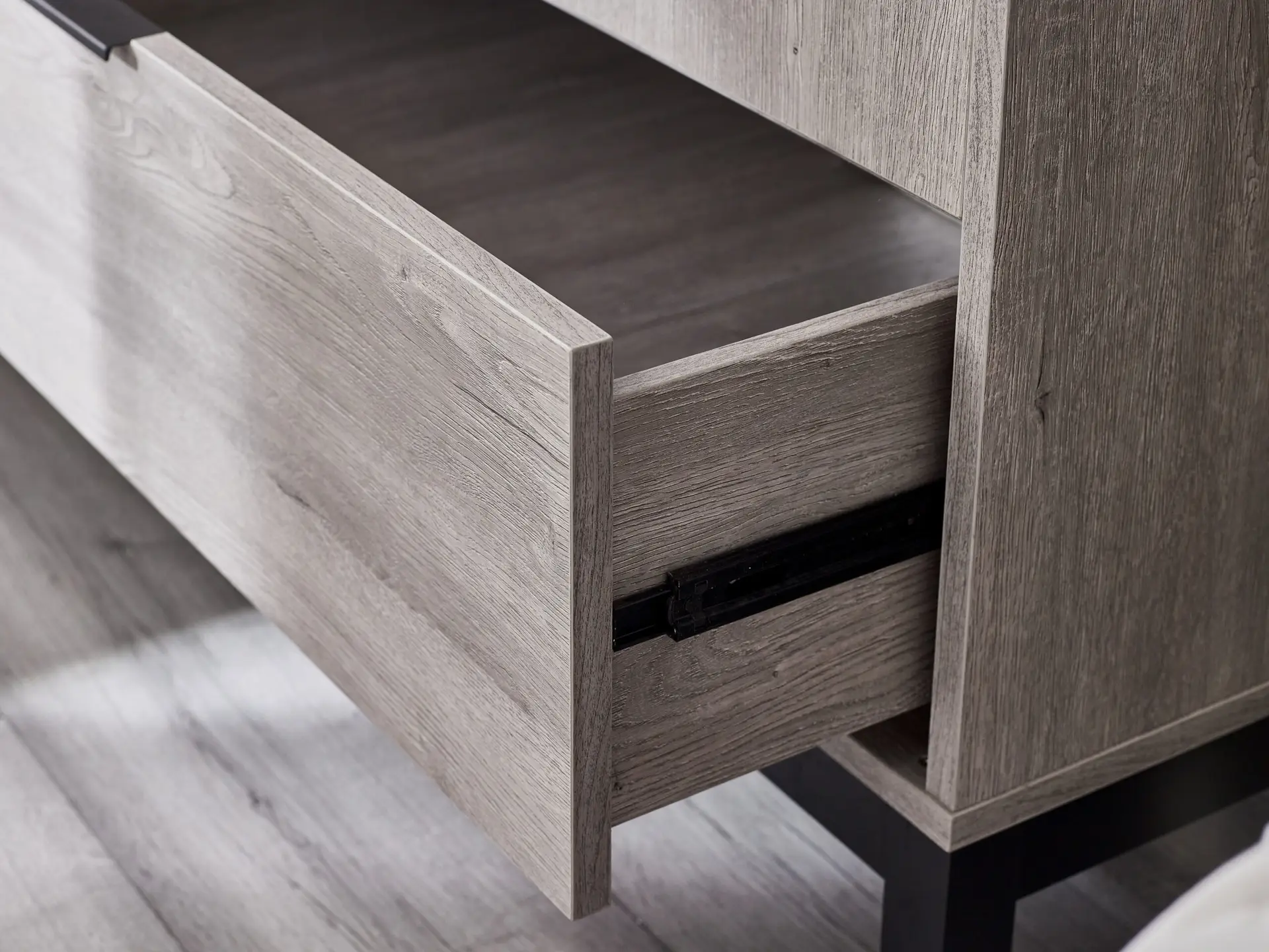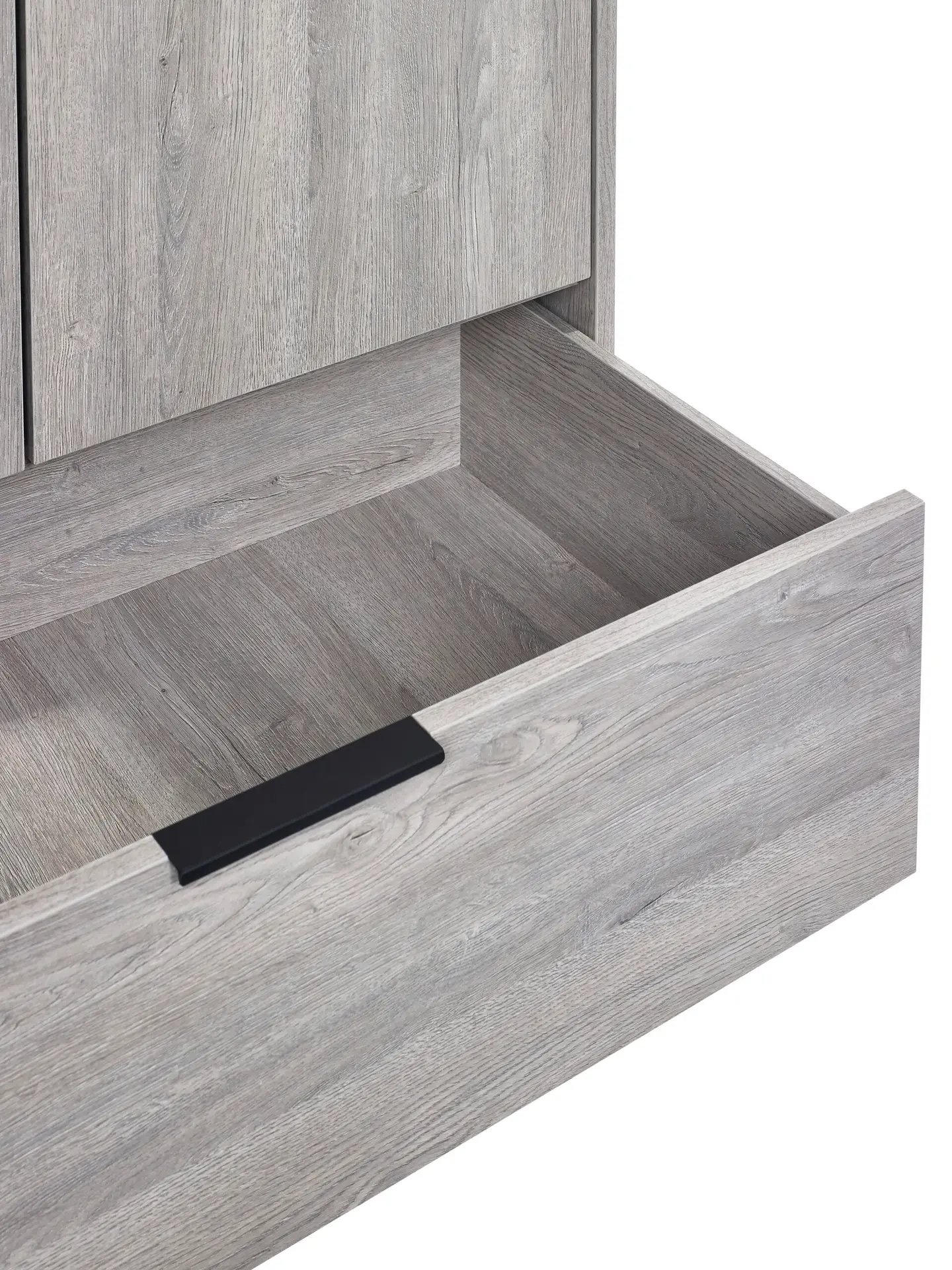 - Radiates rustic allure with its stunning grey oak finish, seamlessly complementing a range of interior styles