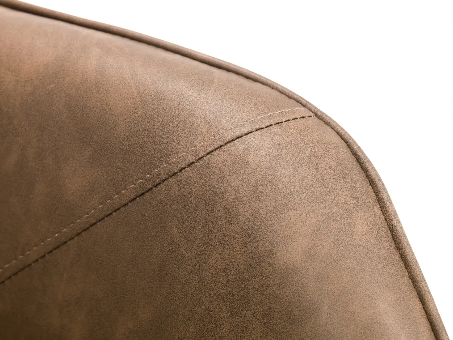 - Upholstered in soft touch brown faux leather, suitable for a contemporary setting..