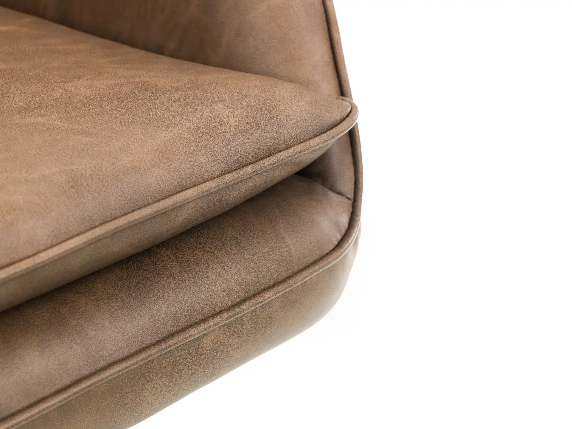 Upholstered in a brown soft faux leather fabric with a black powder coated metal base, the Bowery Swivel Chair offers a modern, industrial styling that will enhance any modern living area with an industrial touch, featuring a 360-degree swivel function. This chair excels in comfort with a sumptuous amount of padding, with an additional back pillow allowing you to relax all day.