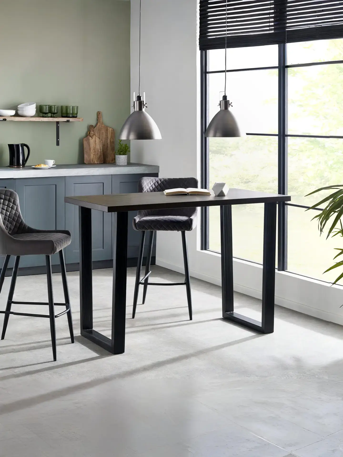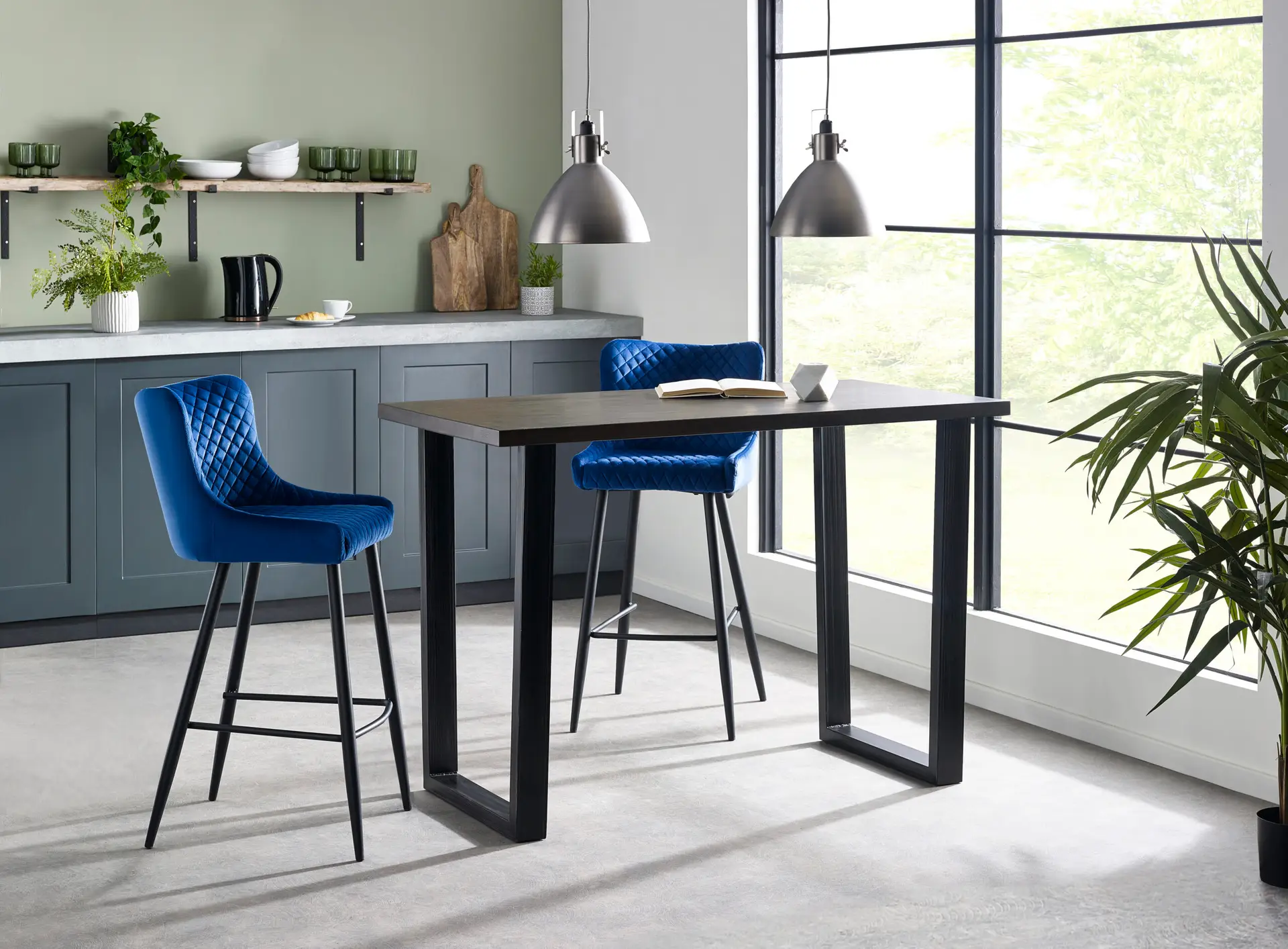 • Pair with a bright coloured velvet bar stool for a modern look, or some industrial leather bar stools for a more retro look.