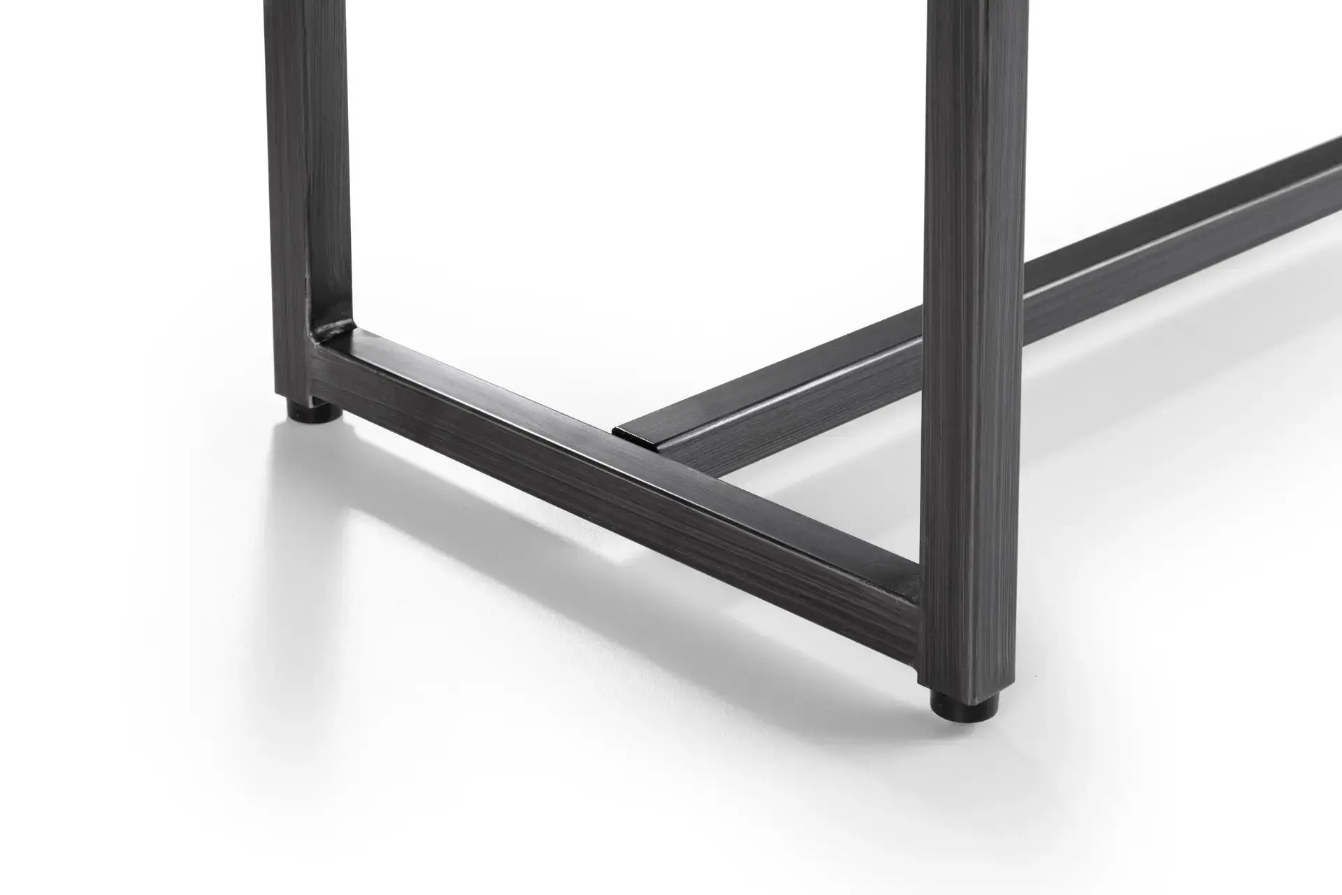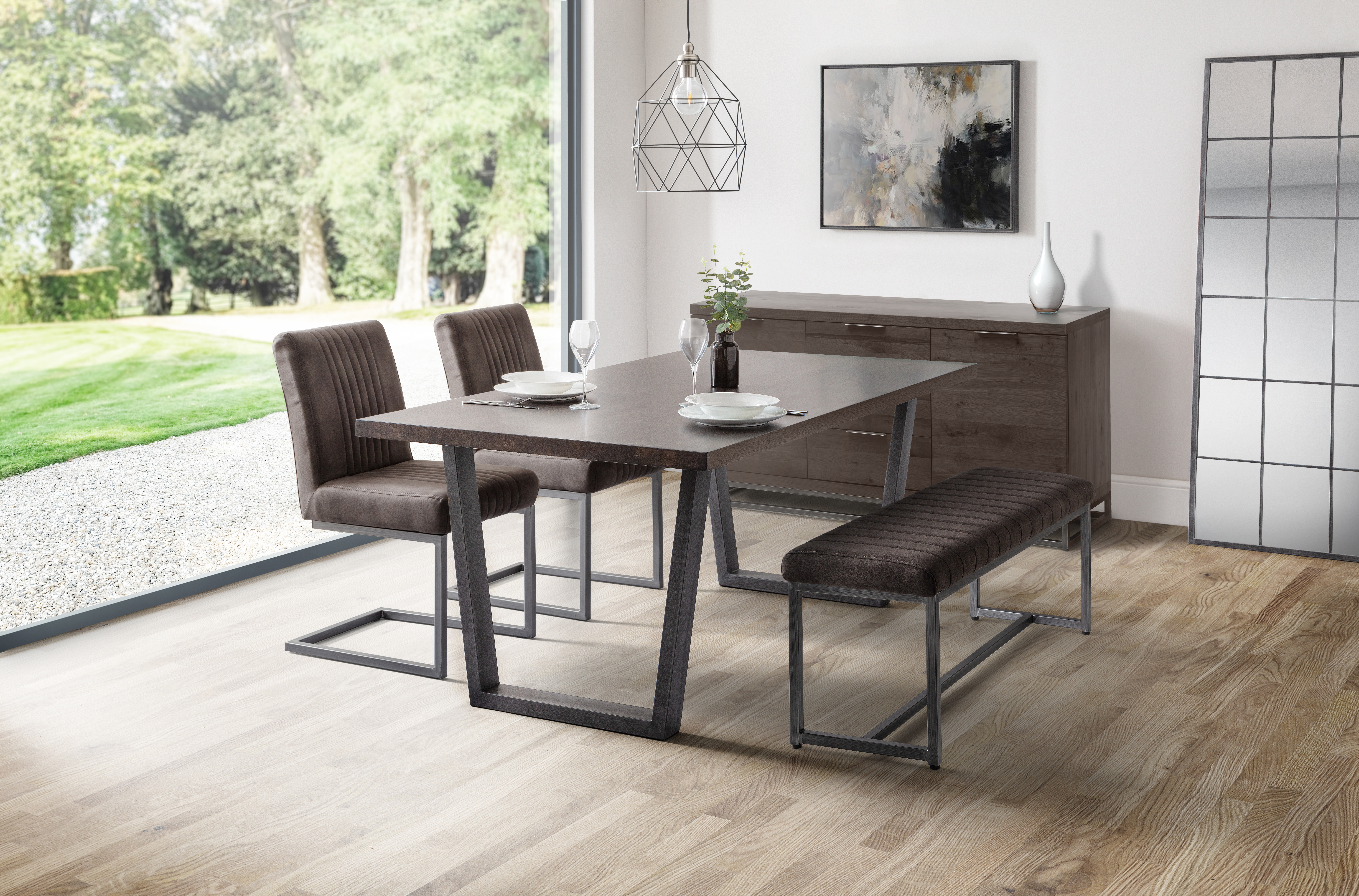 The Brooklyn Upholstered bench brings an industrial, retro design to any dining room. Finished in a charcoal grey suede, upon an industrial style gunmetal frame this bench is the perfect match for the Brooklyn Dining Table. Part of the Julian Bowen Brooklyn Dining and Occasional Collection.