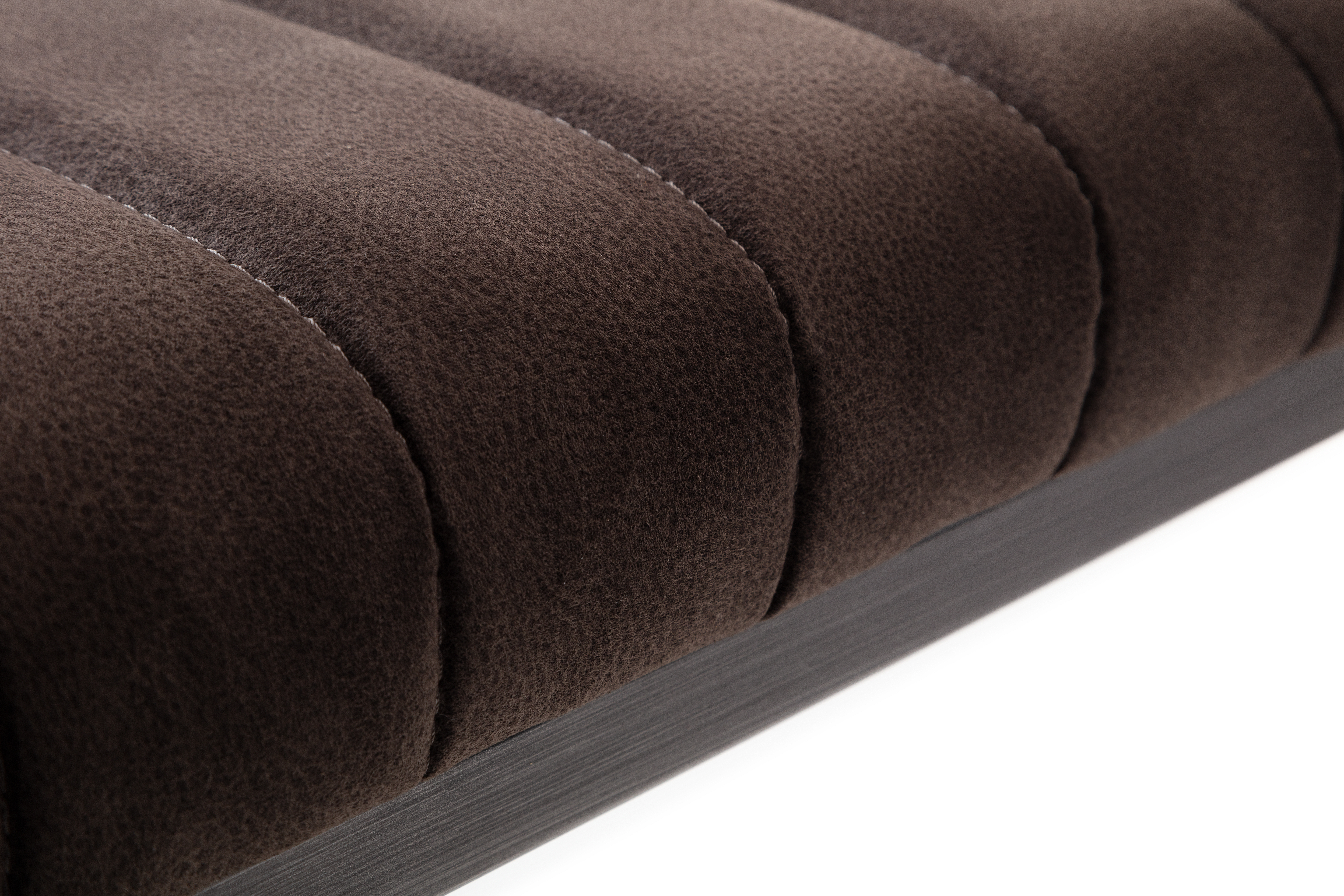 - Elegant Charcoal Upholstery: Luxurious tufted design with robust metal frame for modern interiors. The charcoal grey suede finish adds a touch of sophistication and comfort to any space.