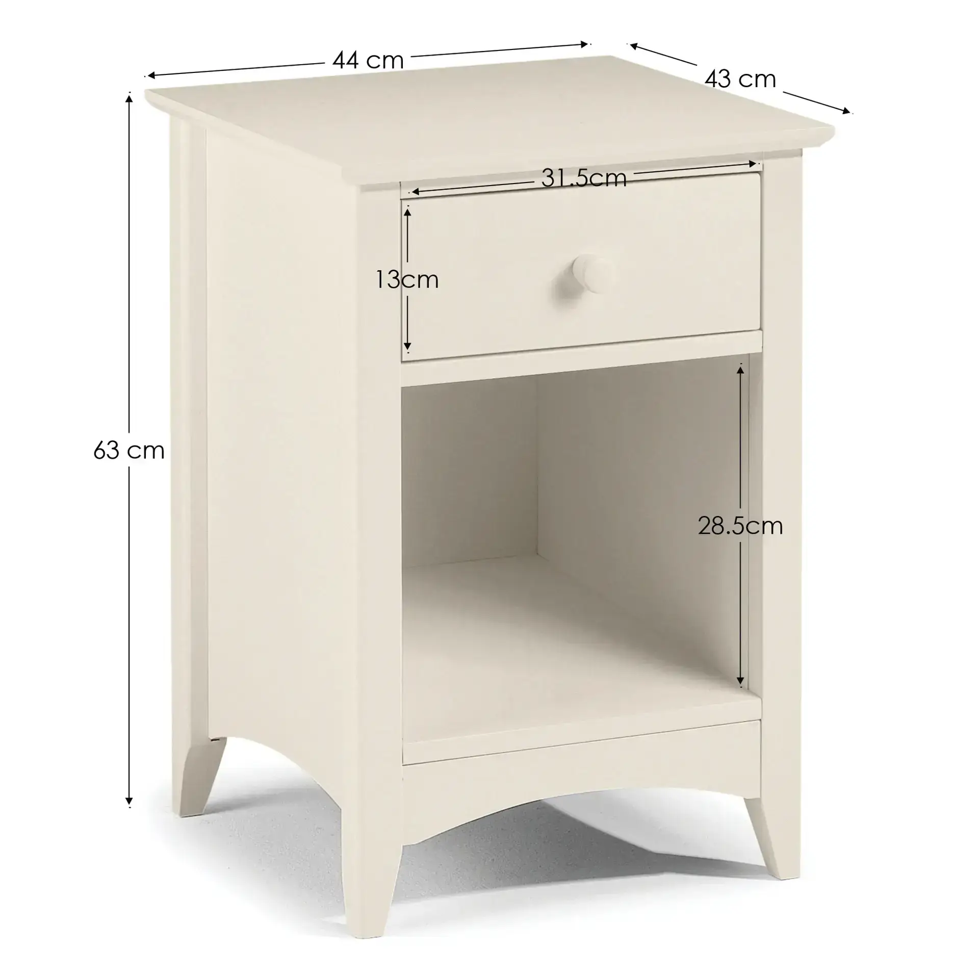 Cameo is a beautiful stone white lacquered bedroom range. Its timeless shaker design is the perfect accompaniment to any interior style and is perfect for grown-up bedrooms and children’s bedrooms alike. Solid pine frames ensure a sturdy and durable construction. The Cameo 1 drawer bedside is well-proportioned and comes with one drawer and a handy storage shelf.