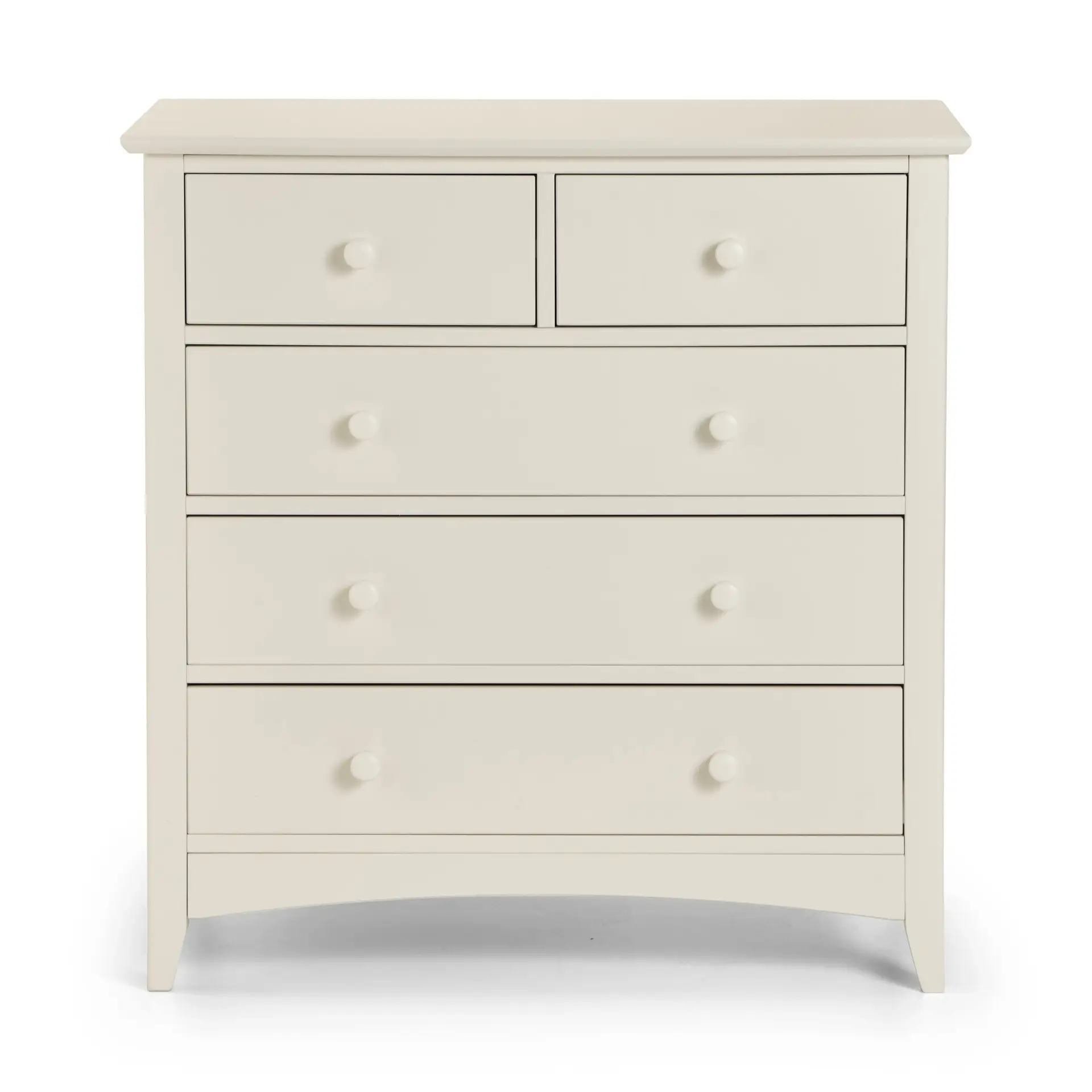 • Classic Design: The Julian Bowen Cameo 3+2 Chest features a timeless stone white finish, adding a touch of elegance to any bedroom decor. Its classic design complements both traditional and contemporary interiors, making it a versatile addition to your home.