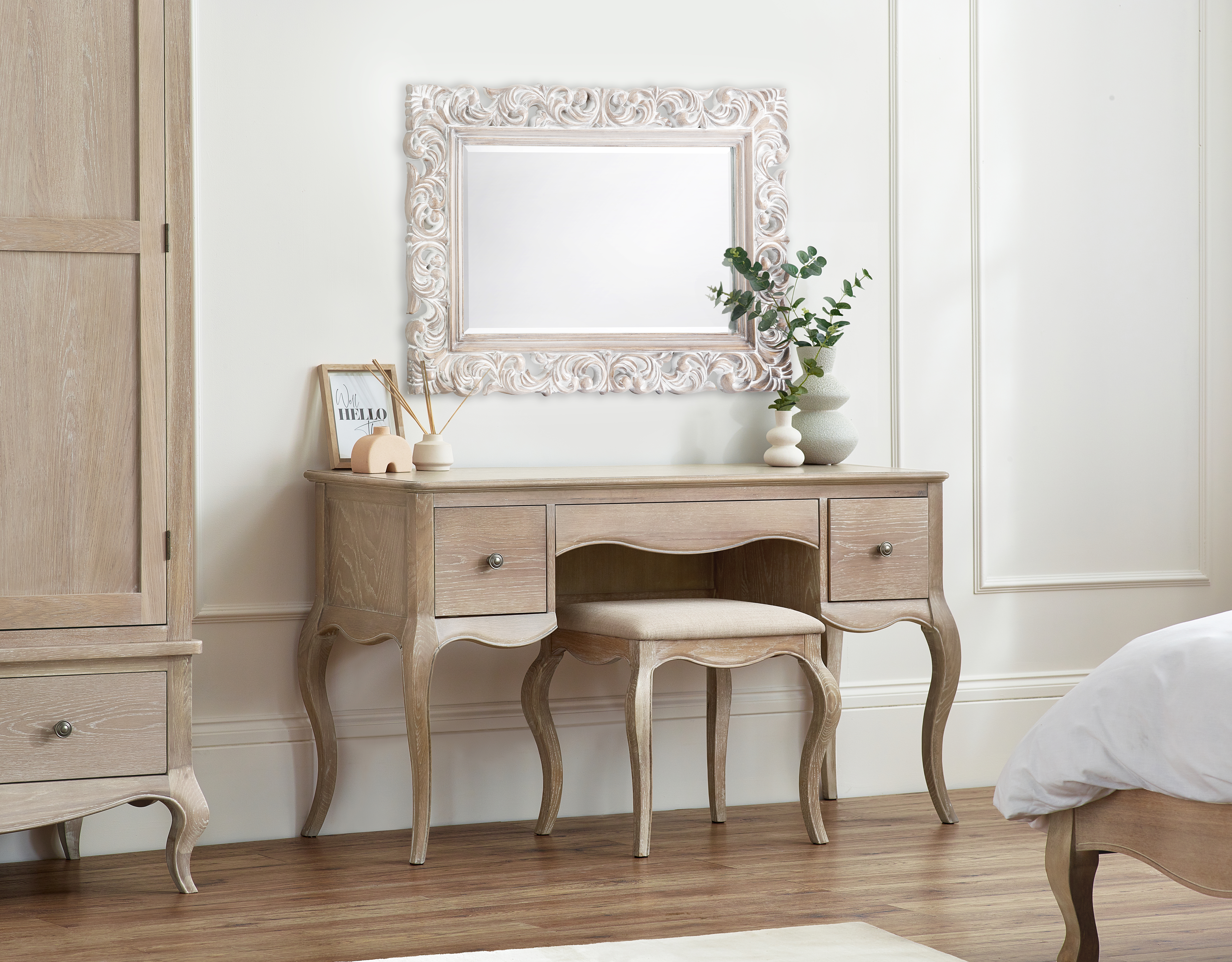 Inspired by French design, the Camille bedroom range boasts beautiful curves and soft lines. Featuring traditional ornate details – this collection exudes elegance, and includes: a 2-drawer bedside, 4+2 chest, 6 drawer wide chest, combination wardrobe and dressing table with stool. Match with the Camille bed to conclude the look immaculately.