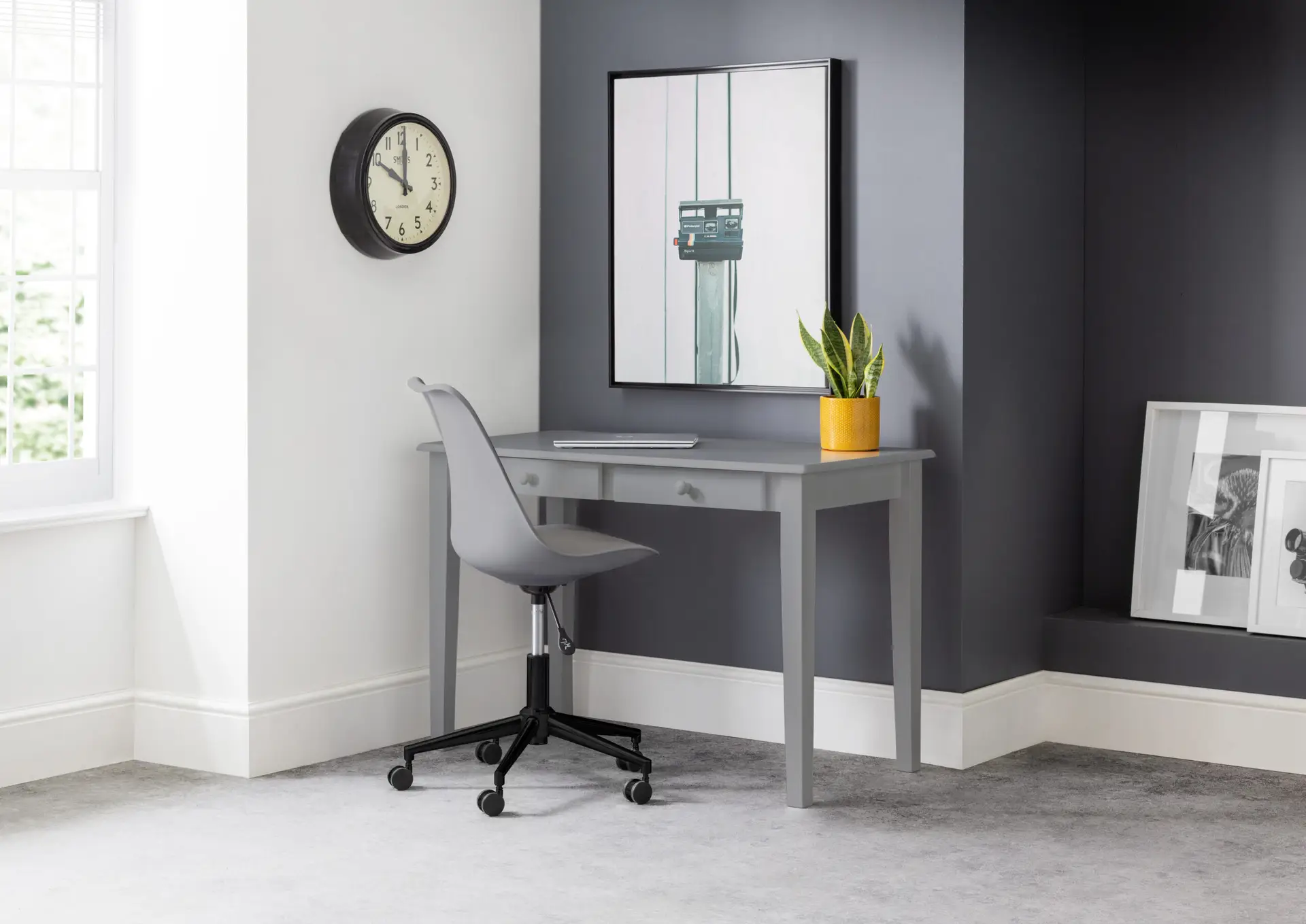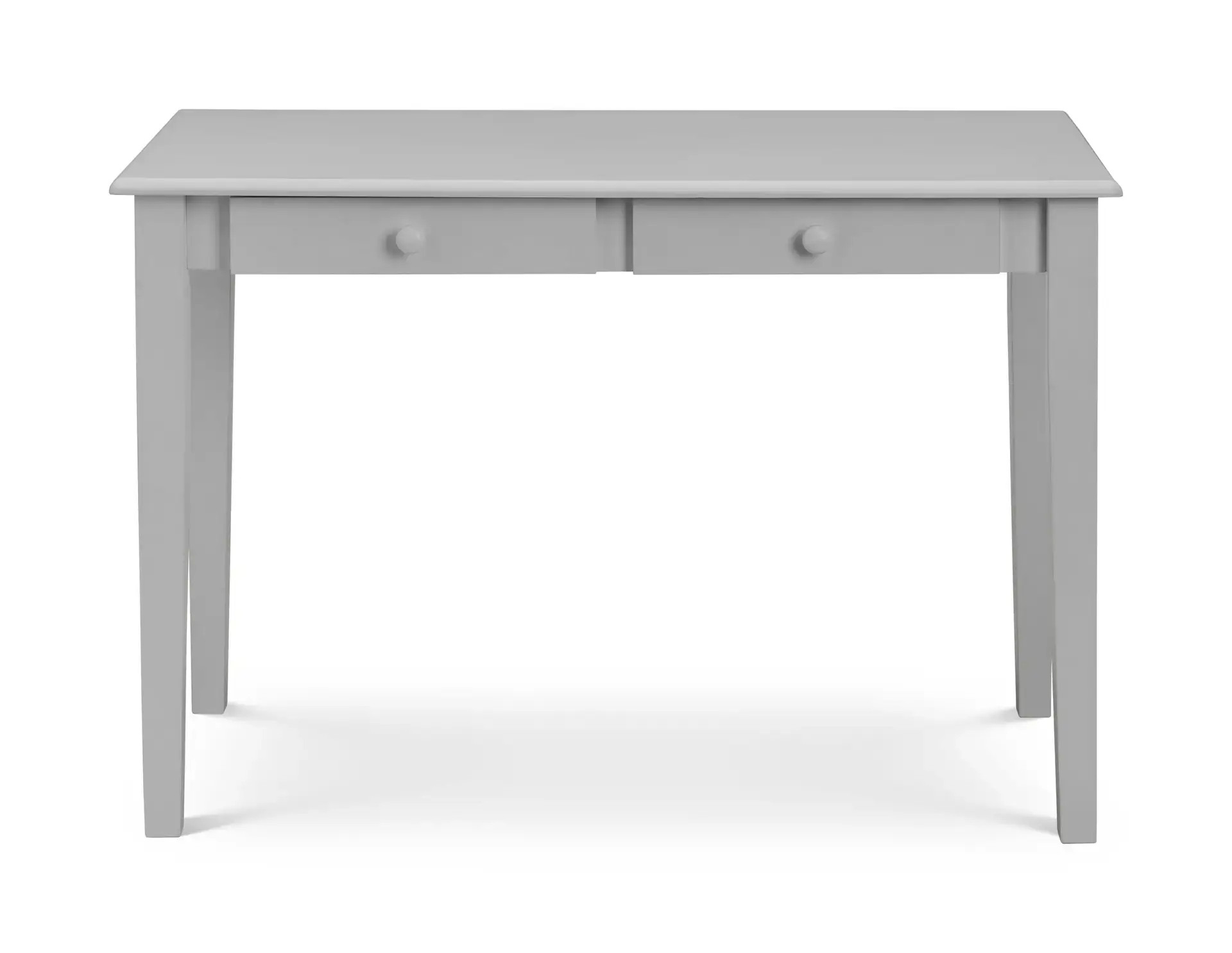 Finished in a grey lacquer, the free-standing Carrington Desk has a simple, yet stylish look. Featuring two drawers with rounded handles for storing all your stationary essentials, the Carrington Desk offers a compact design suitable for a range of décor. Pair with a variety of Julian Bowen Chairs.
