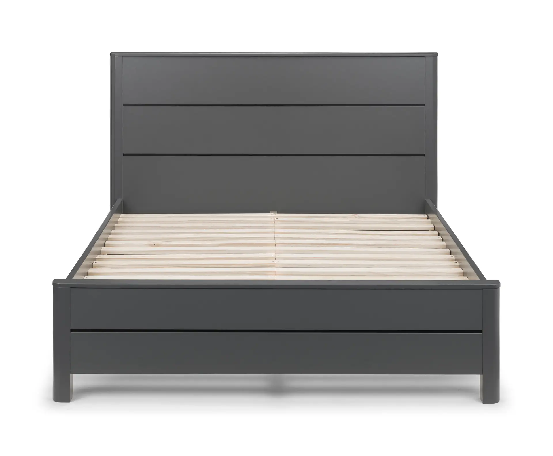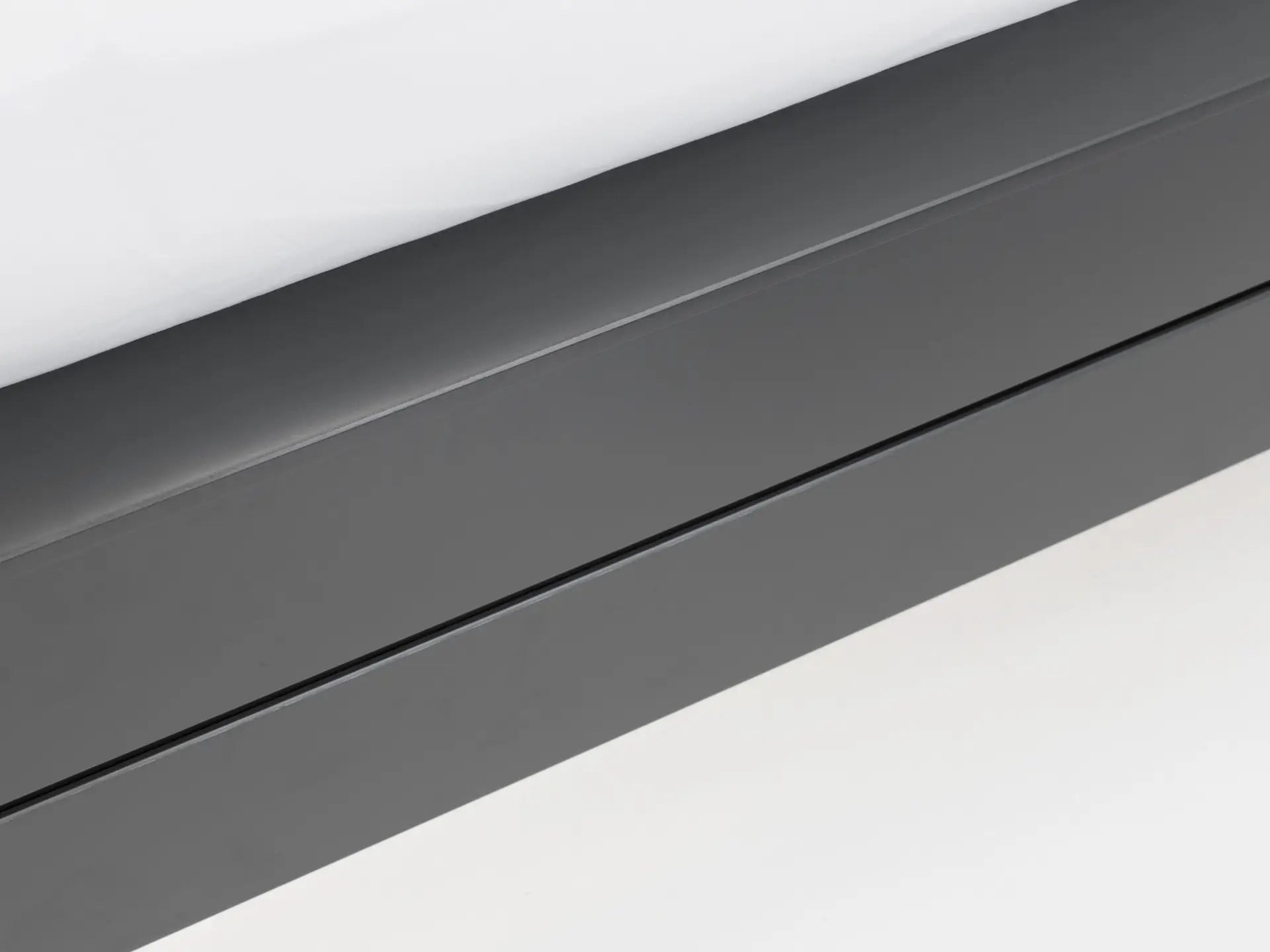 The Chloe Bedroom collection has a modern, retro style finished in a storm grey lacquer. The corners are rounded for a softer look, creating perfect balance between style and functionality. Featuring recessed lines in the headend and footend, the Chloe bed is available in double and king sizes.