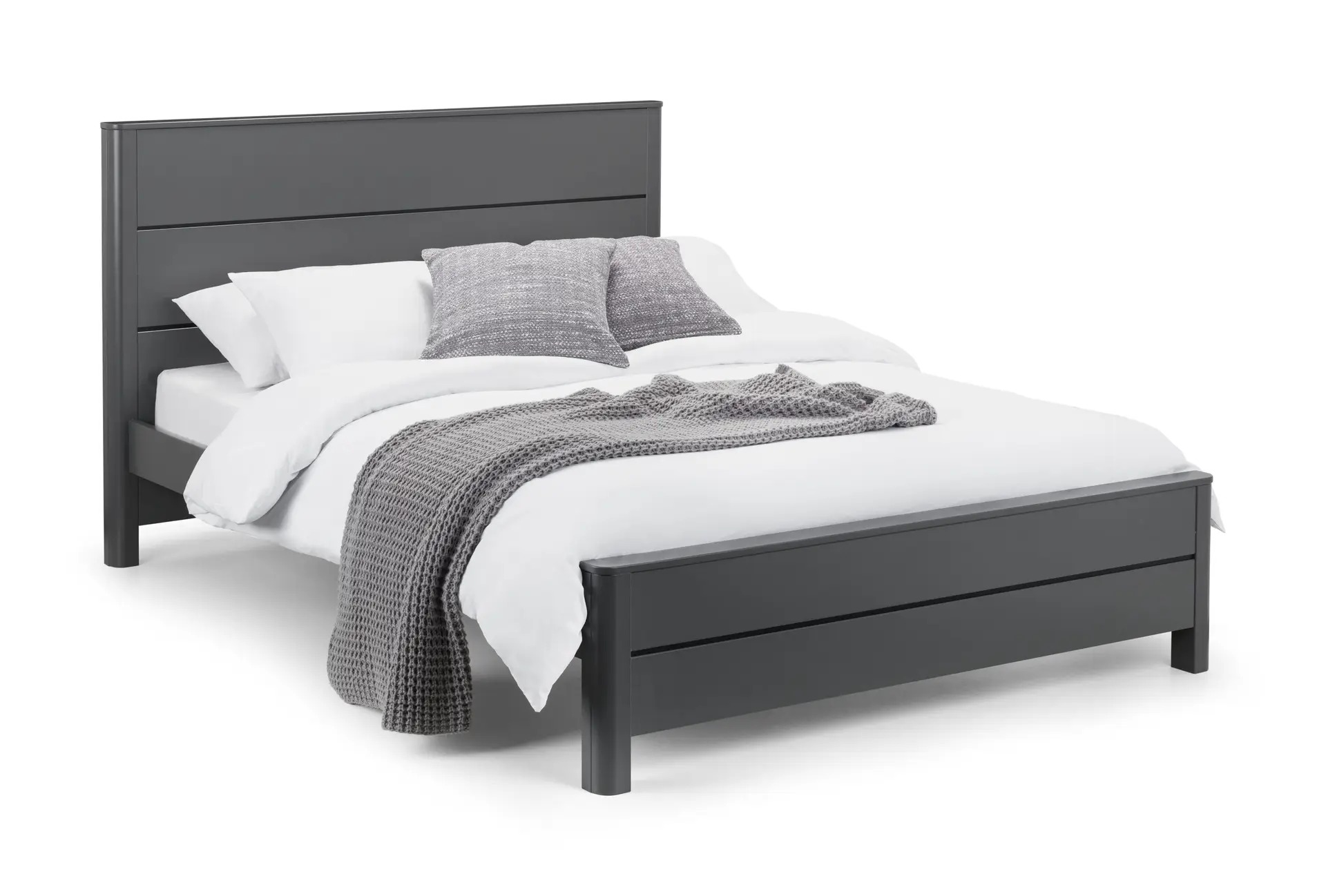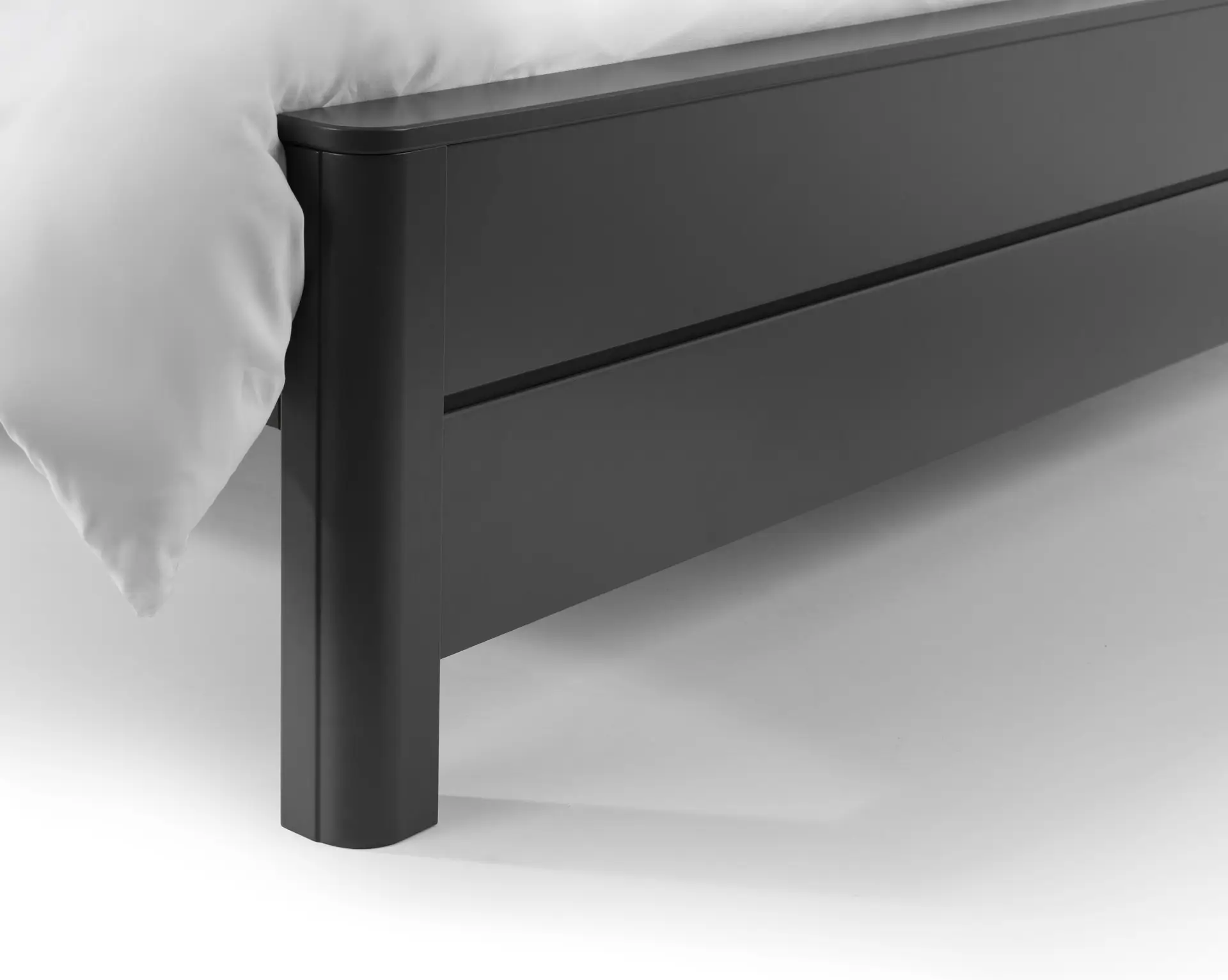 The Chloe Bedroom collection has a modern, retro style finished in a storm grey lacquer. The corners are rounded for a softer look, creating perfect balance between style and functionality. Featuring recessed lines in the headend and footend, the Chloe bed is available in double and king sizes.
