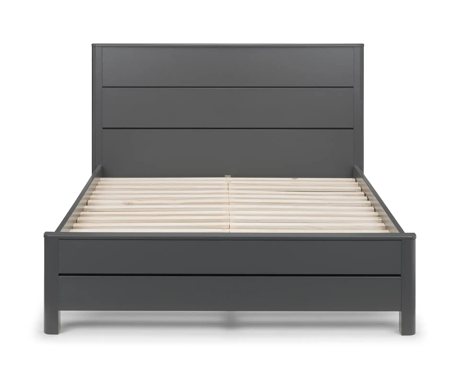 • Elegant Design: Features a stylish storm grey and black finish for a modern look. Sturdy Construction: Made from high-quality materials ensuring durability. Comfortable Sleeping Area: Designed to provide a comfortable sleeping space. Elegant Look: Adds a touch of sophistication to any bedroom decor. Easy to Clean: Smooth surfaces make cleaning a breeze.