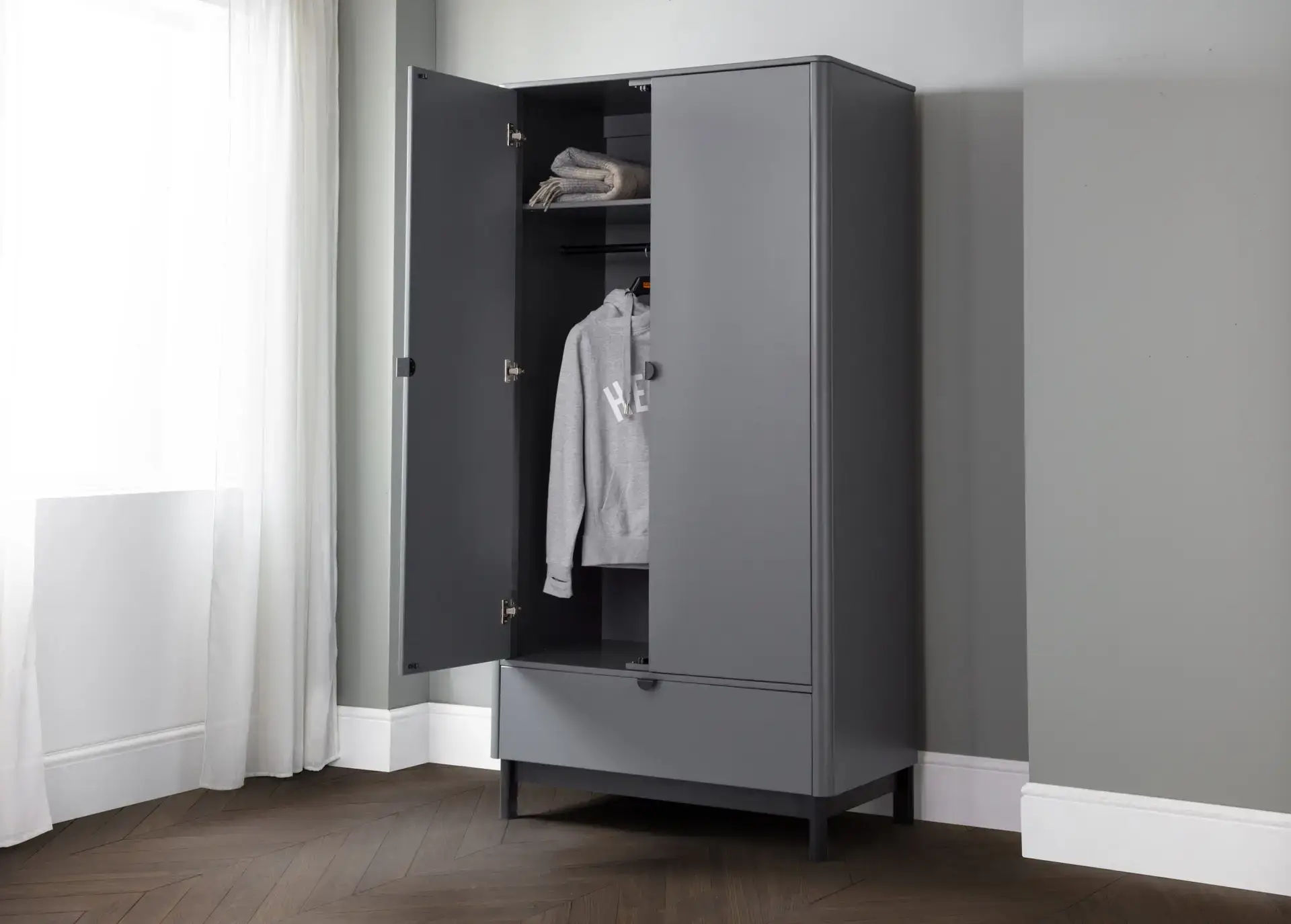 - Included in Purchase: Wardrobe with storm grey/black finish, requires minimal assembly. Easy to set up and maintain, this wardrobe is a practical and stylish addition to any home.