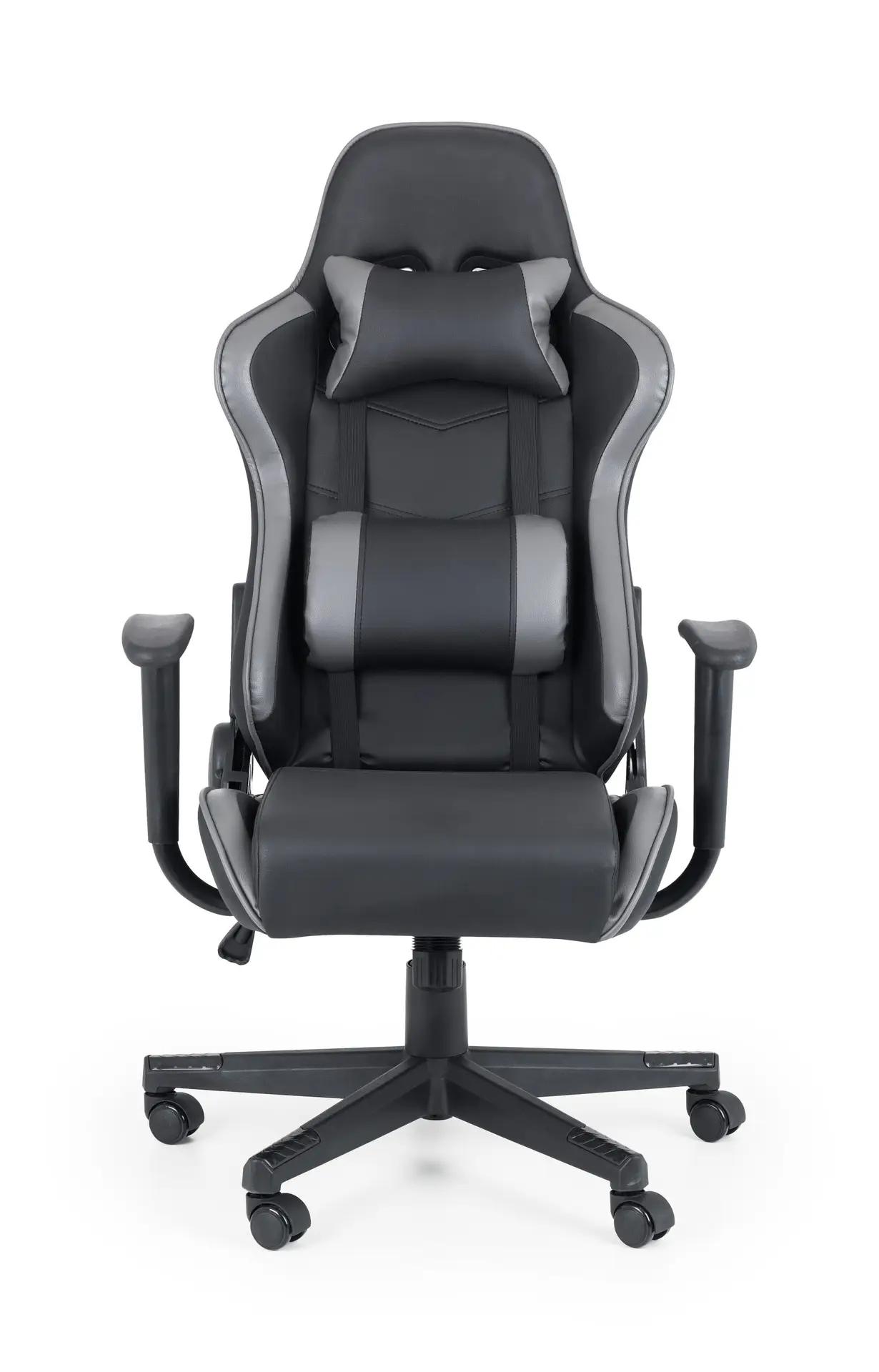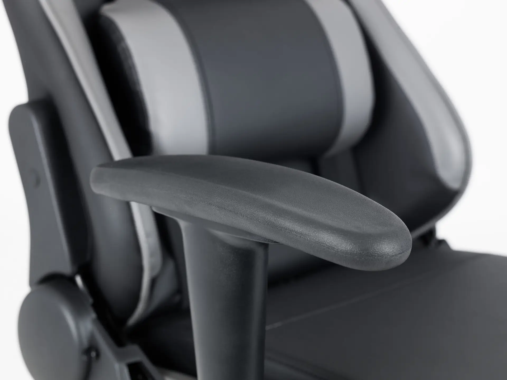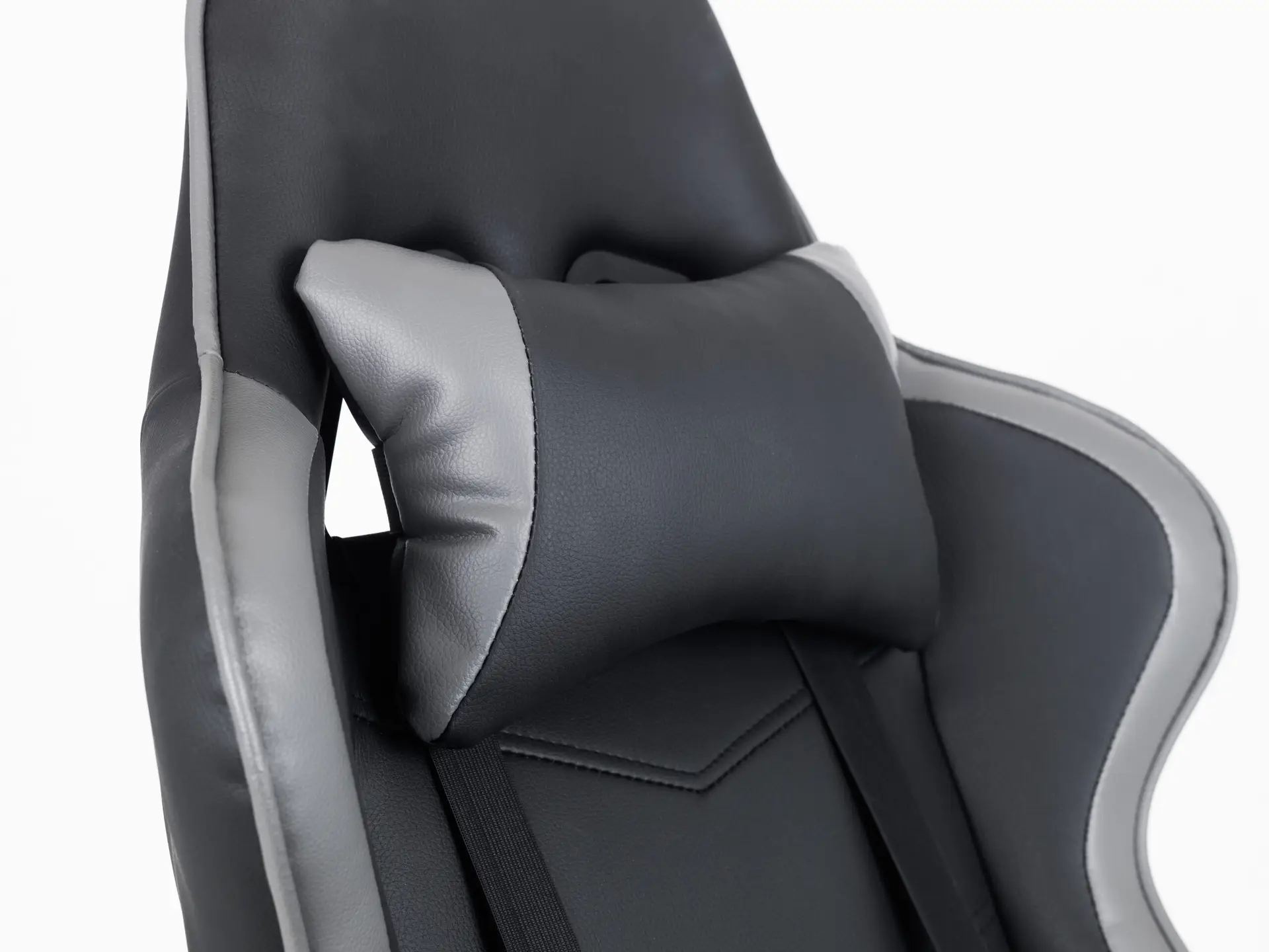 Get gaming with the Comet Gaming Chair. Upholstered in a modern black faux leather with grey accents, this gaming chair features a comfortable neck and lumbar support perfect for long hours of gaming or studying. The tilt mechanism makes this chair a delight to sit in allowing you to be at your utmost comfort whilst easily moving around upon the chairs 5 castor base.