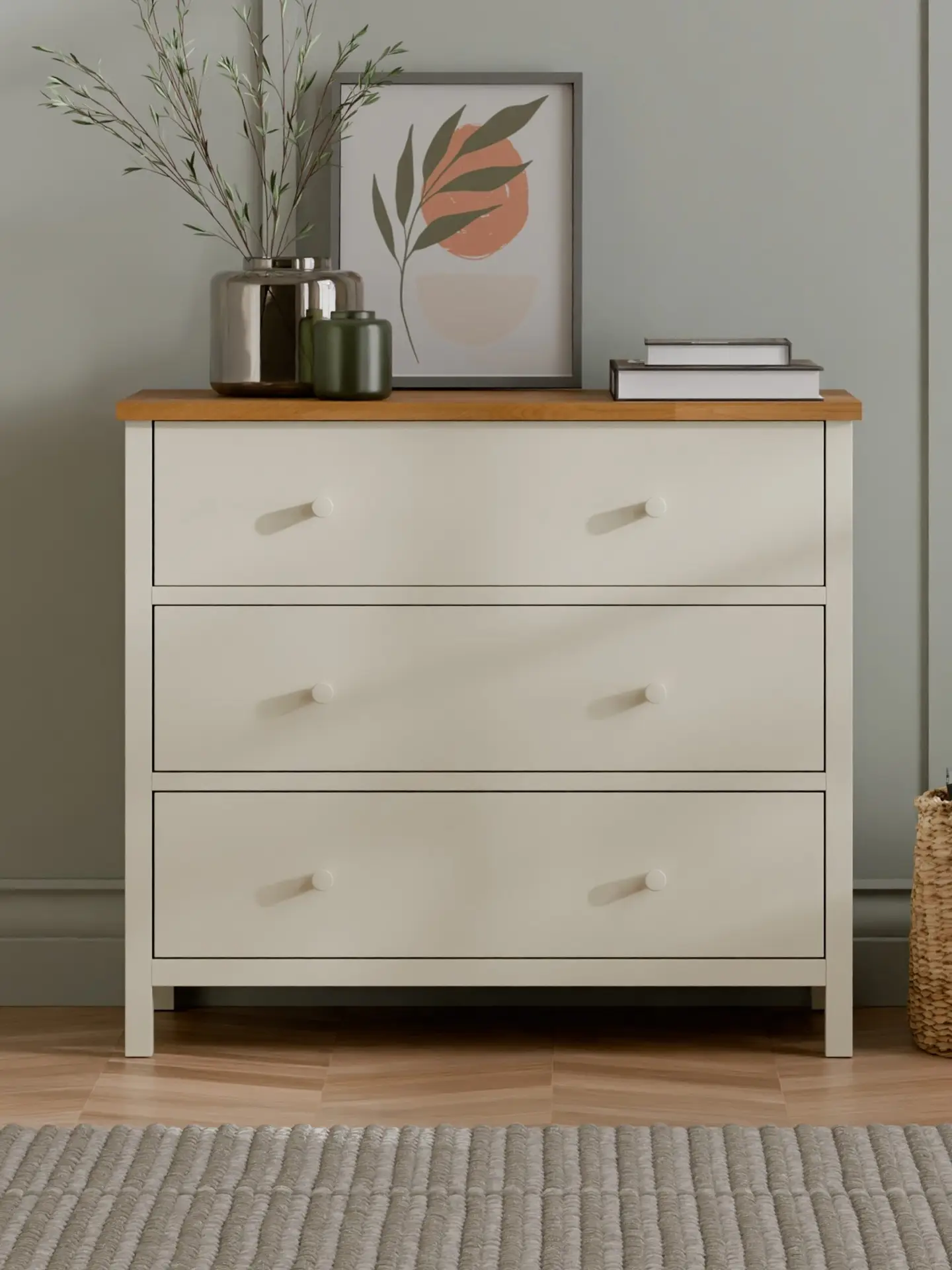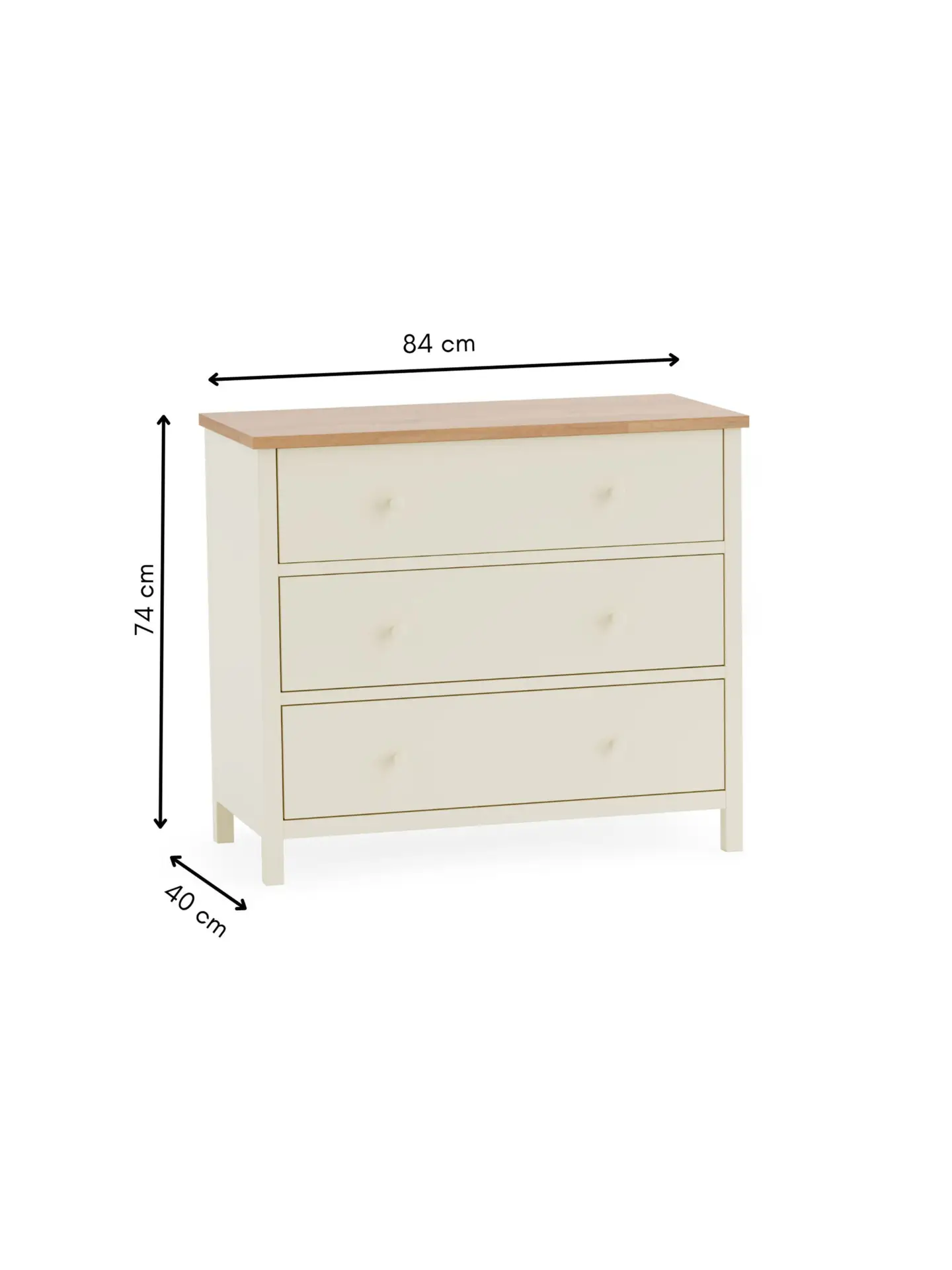 Coxmoor 3 Drawer Chest – Ivory and Oak