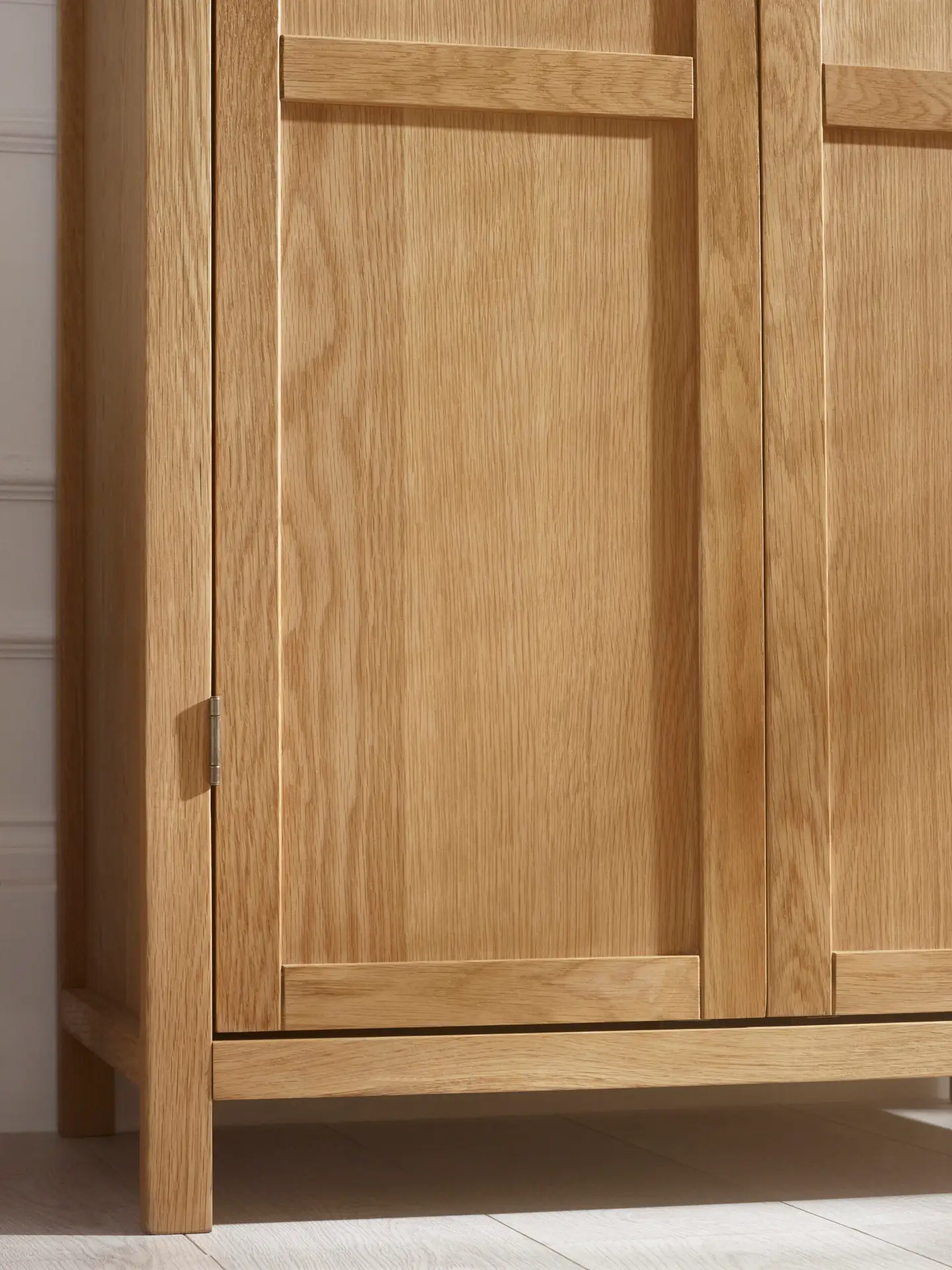 Enhance your bedroom with the Coxmoor Wardrobe in oak, a sophisticated storage solution that combines style and practicality. Crafted with clean lines and a classic oak finish, this wardrobe offers ample hanging space for clothes, along with a convenient shelf for folded items or accessories. The sleek design, complemented by elegant knob handles, allows it to fit seamlessly into any bedroom, while the natural wood grain adds warmth and character to your space. Simple assembly makes it easy to set up.