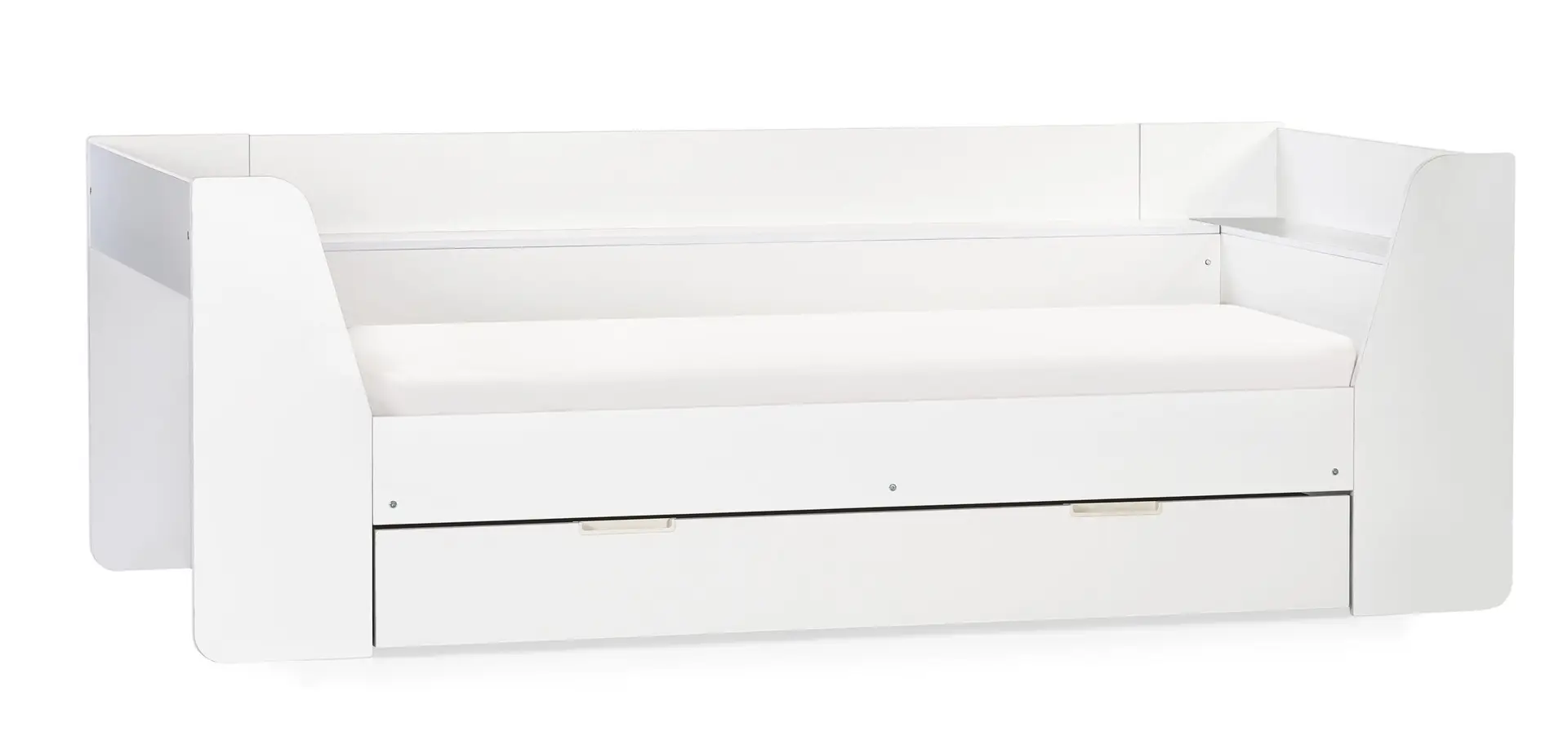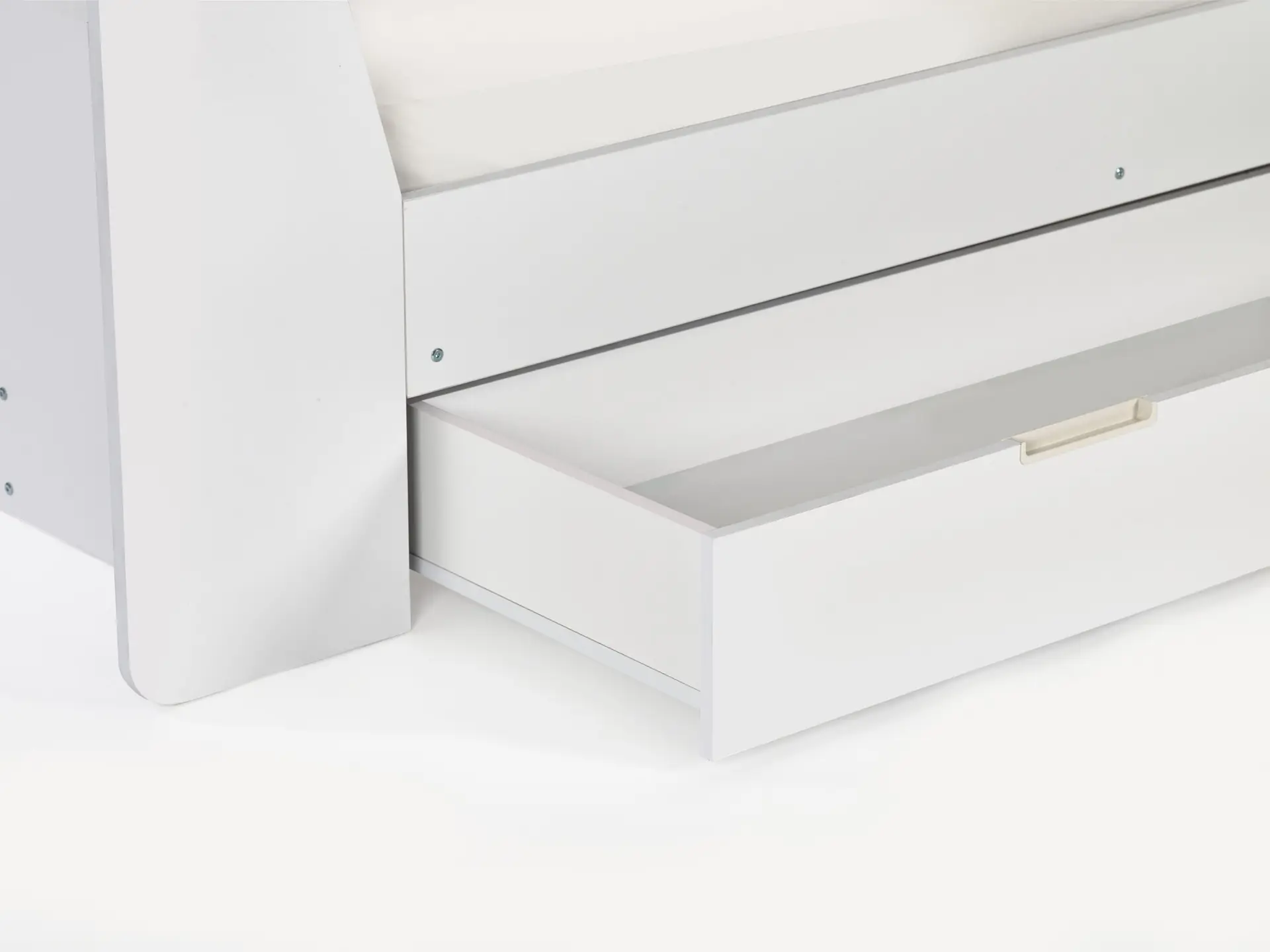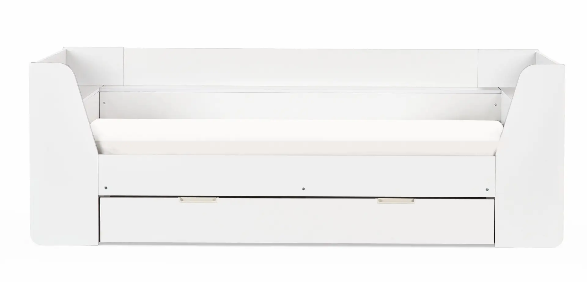 Offering a modern look, the Cyclone Daybed provides the perfect blend of style and functionality to any kid’s bedroom. Featuring a large pull-out drawer with two embedded handles and a shelving unit on the top ideal for storing and organising key essentials. Creating the perfect versatility for your little ones for lounging and sleeping. Available in All White and Taupe.
