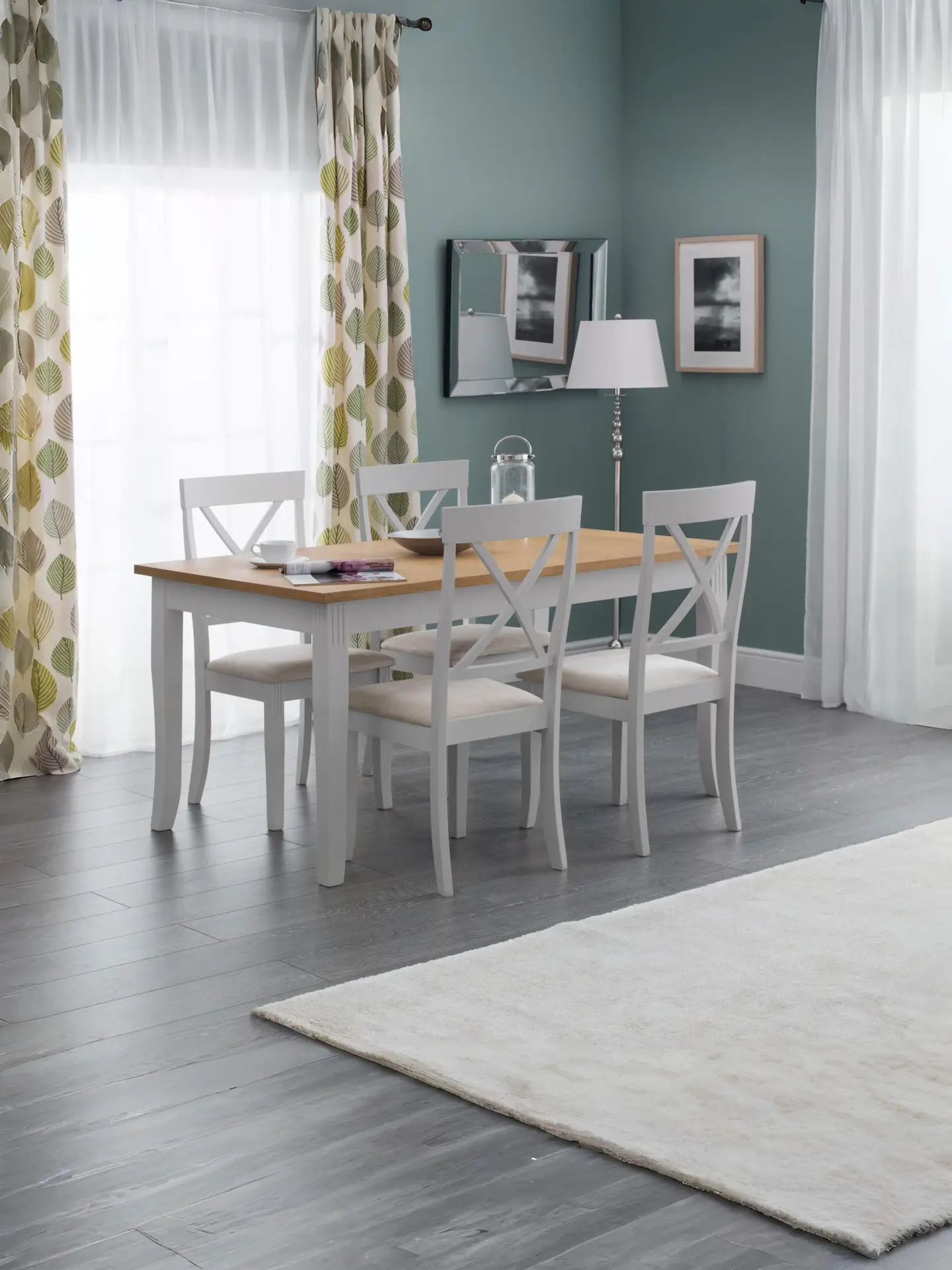 Crafted from solid rubberwood and a real oiled oak veneer 25mm top, this is the ideal dining table to please your dinner guests. In an elegant grey lacquered finish, suitable for any dining room decor. A wide range of co-ordinating items are available in the Julian Bowen Davenport collection.