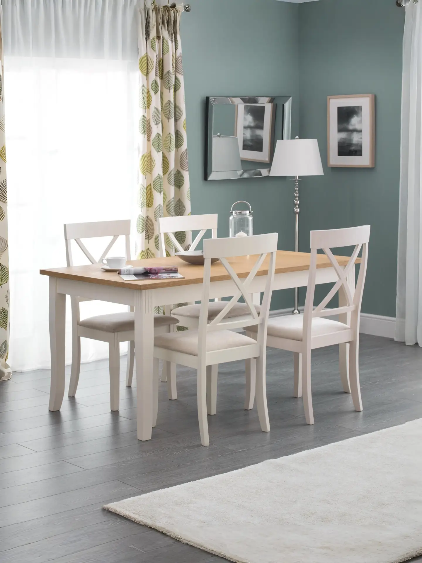 Crafted from solid rubberwood and a real oiled oak veneer 25mm top, this is the ideal dining table to please your dinner guests. In an elegant ivory lacquered finish, suitable for any dining room decor. A wide range of co-ordinating items are available in the Julian Bowen Davenport collection.