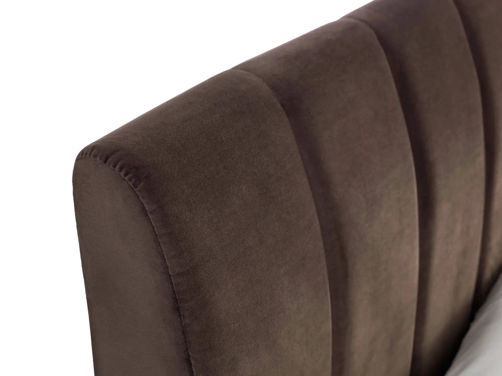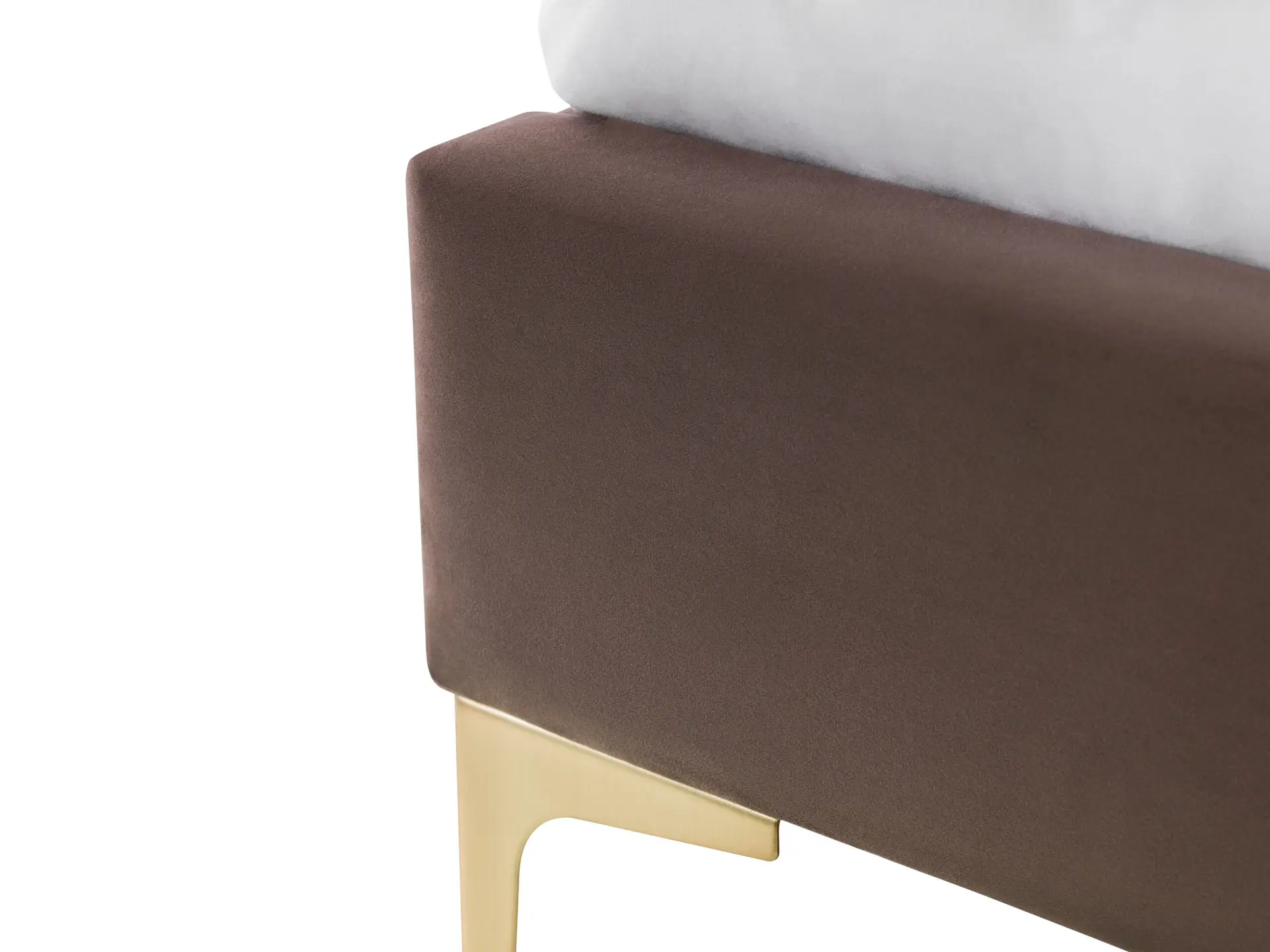 The Deco bed showcases a low profile design featuring a scalloped headboard creating a unique, timeless appeal. Upholstered in a truffle velvet fabric complimented by brushed gold metal feet, this bed excels in luxury, adding a contemporary touch to any bedroom. Available in a 135cm Double and 150cm King size.