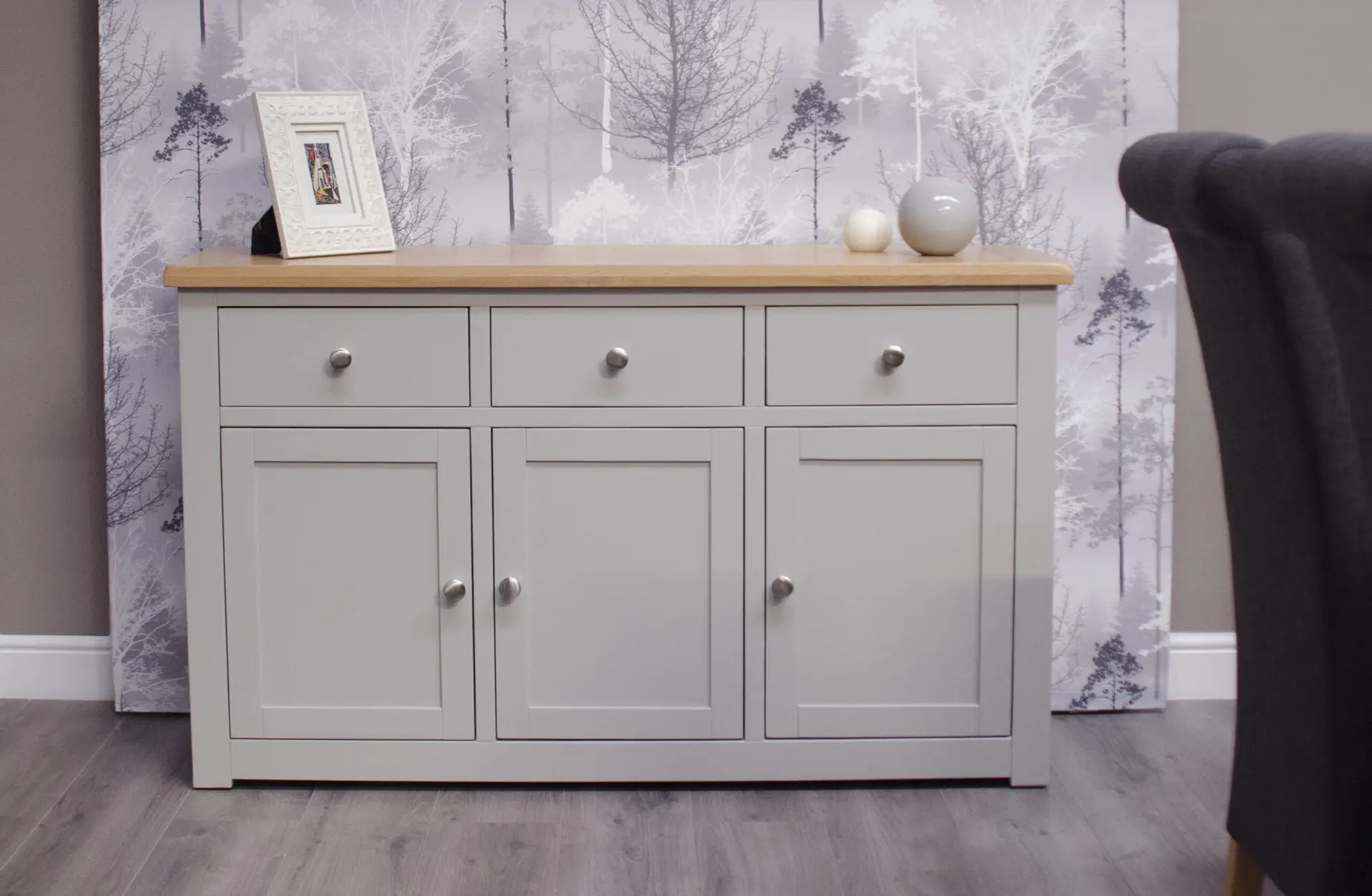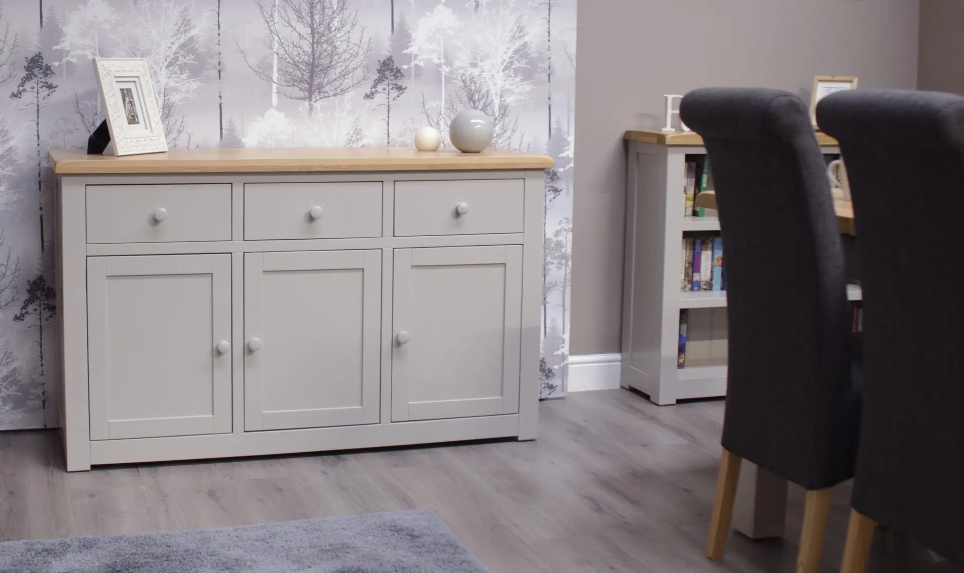 Indulge in the Luxury Diamond Grey Range, a contemporary interpretation of the classic country aesthetic. Featuring a soothing grey painted finish and wooden tops, this range combines the best of both worlds for an effortlessly appealing look. The satin lacquer finish enhances the overall comfort and imparts a warm, homely feel to your living spaces.