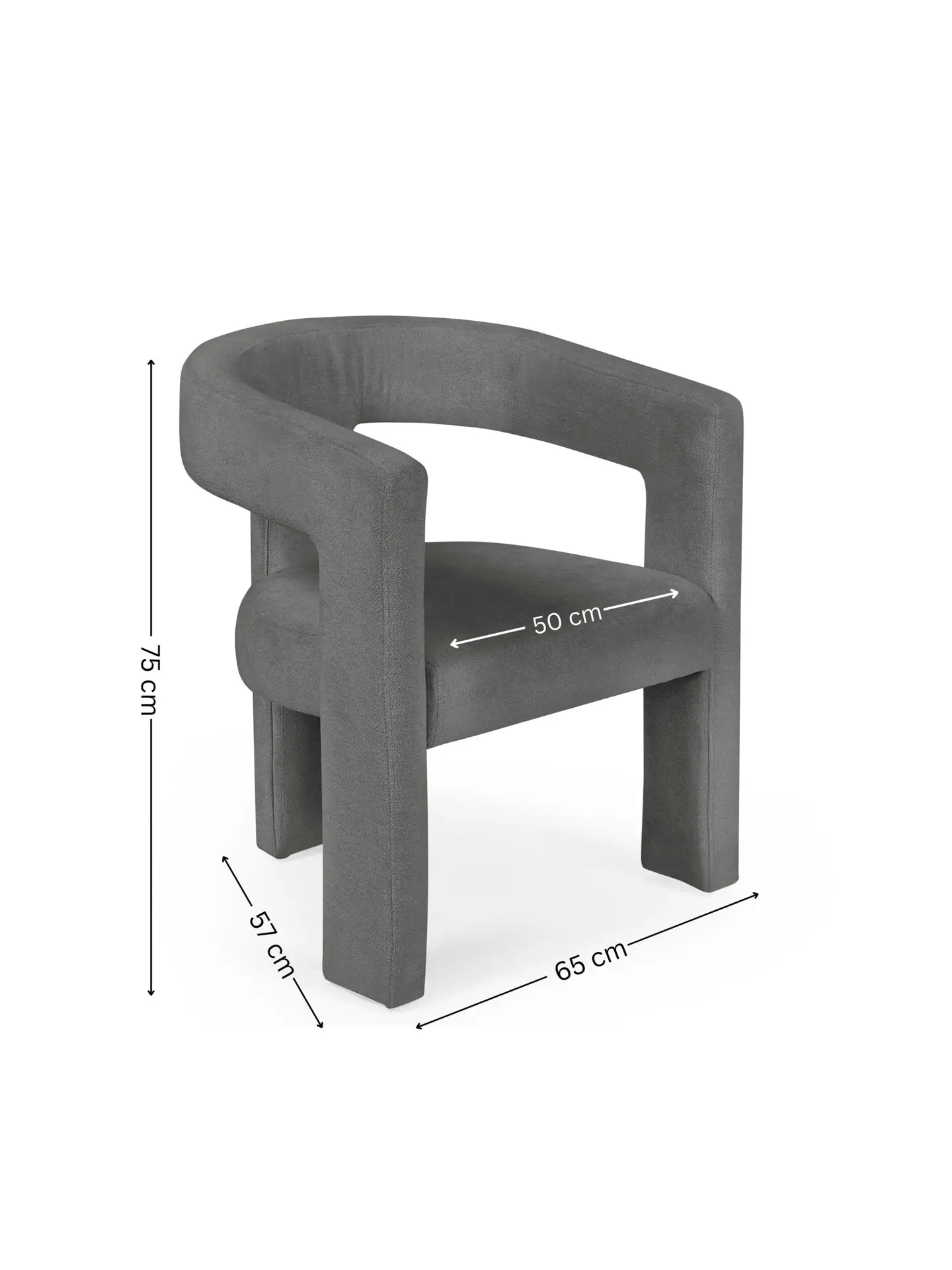 Foot/Leg: H 75 x W 7.5 x D 12.5 cm. Sized for everyday use in dining and lounge spaces. - WHAT’S INCLUDED: Includes ONE grey upholstered chair. Assembly required. Table sold separately.