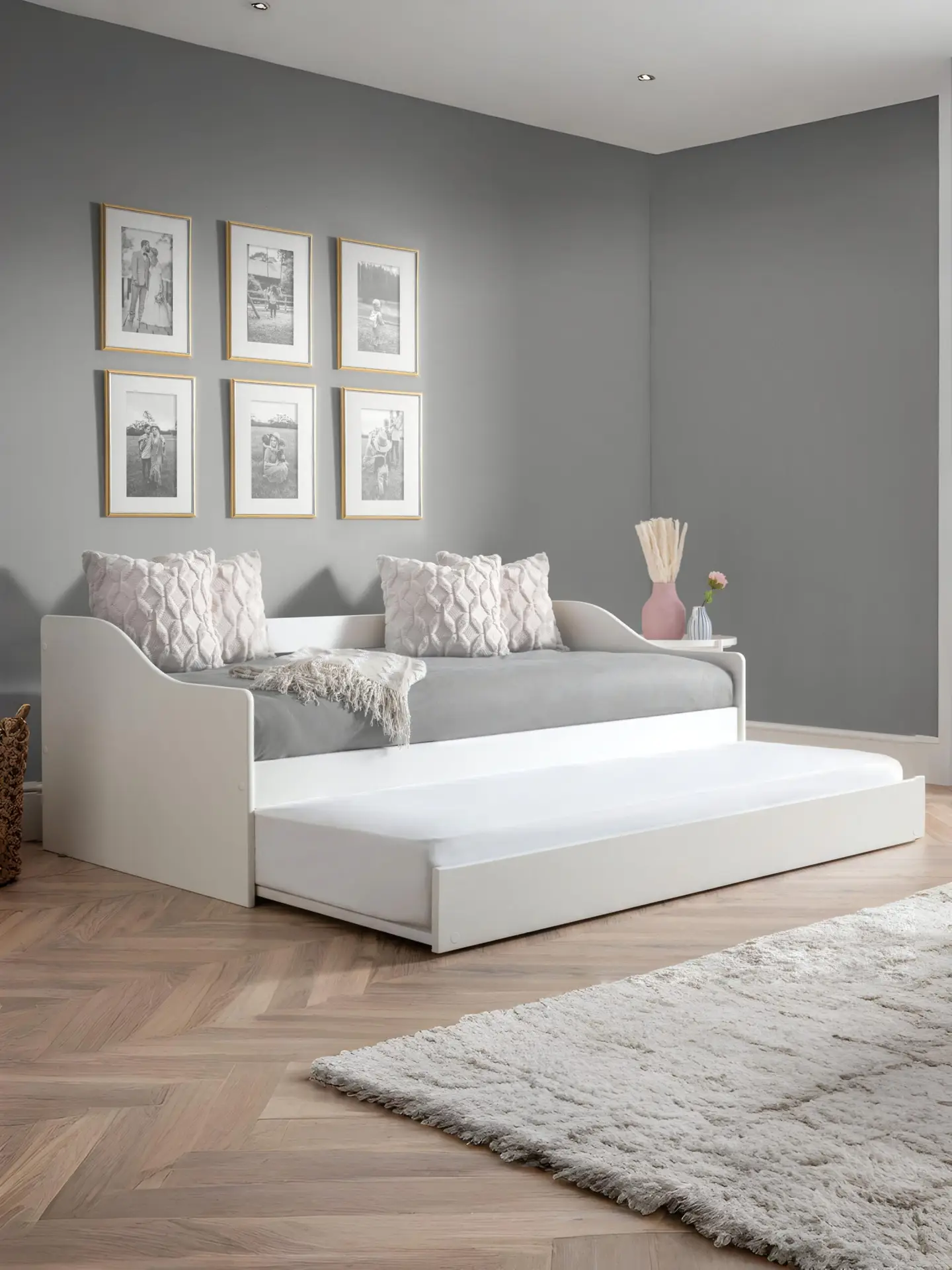 With a sleek curved design, the Elba daybed comes in three beautiful finish options of Surf White, Dove Grey, or Anthracite. Perfect for casual use, or as a guest bed with the classic pull out underbed.
