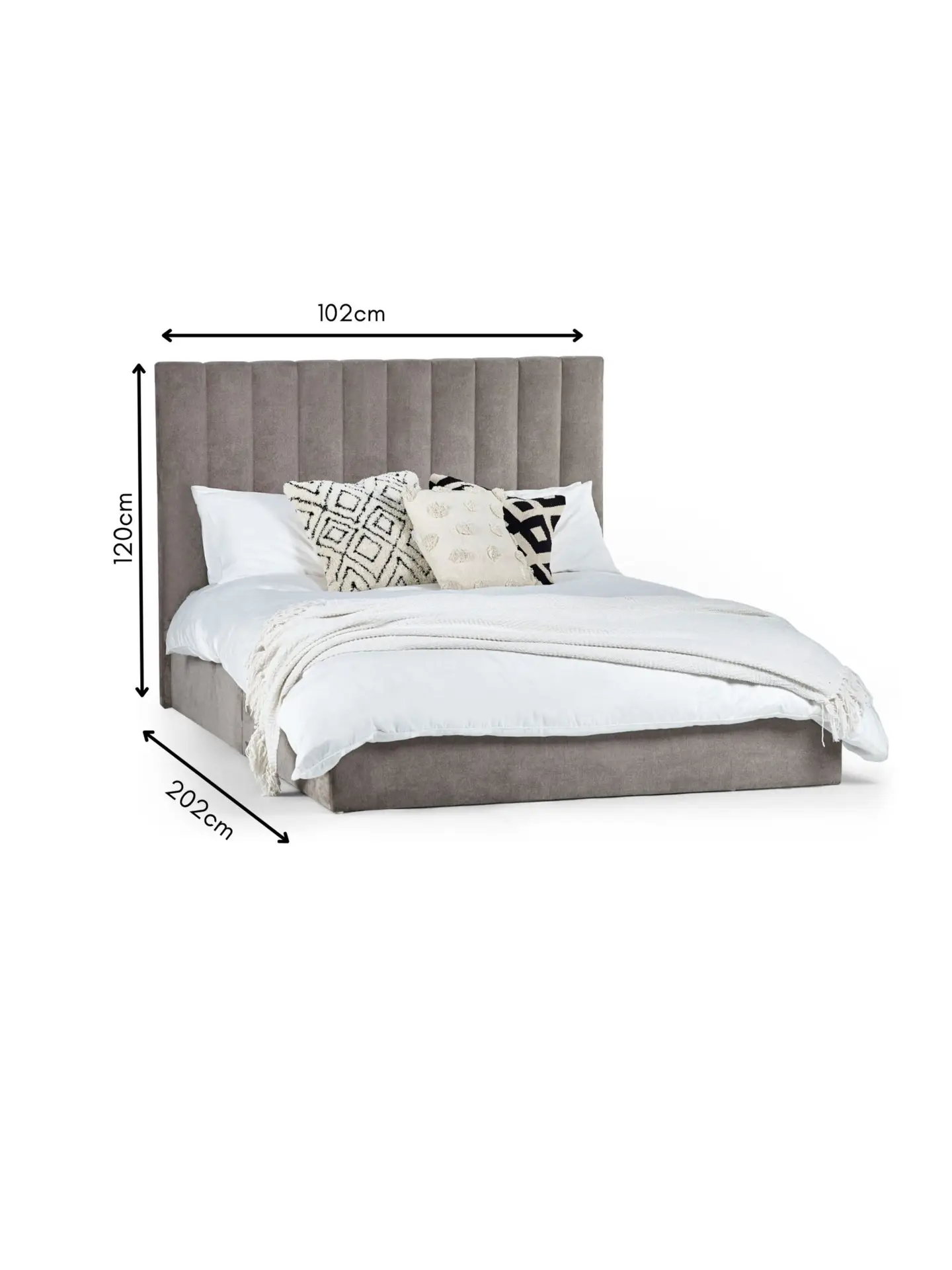 Transform your bedroom into a haven of luxury and style with this elegant bed, finished in a sophisticated chenille grey. The headboard features a modern vertical panel effect, making it a true centerpiece that draws the eye and sparks conversation. Plush padding enhances its visual appeal and invites you to lean back and indulge in cosy mornings or late-night reads. Designed for those who seek elegance without compromising on practicality, this bed arrives conveniently packaged for easy setup and complements various interior styles, turning your sleep sanctuary into a delightful escape! Simple assembly ensures you’re ready to relax in no time.