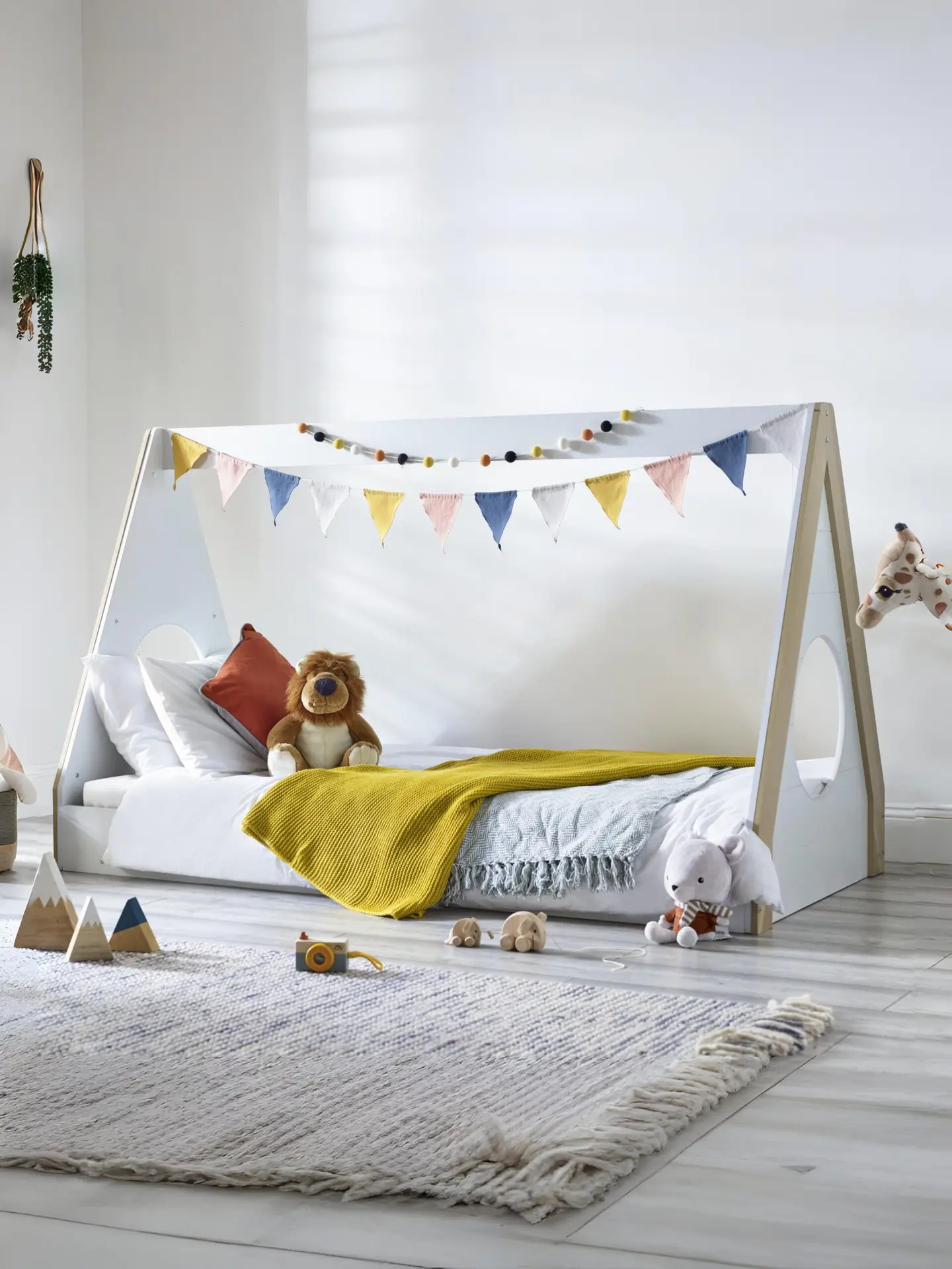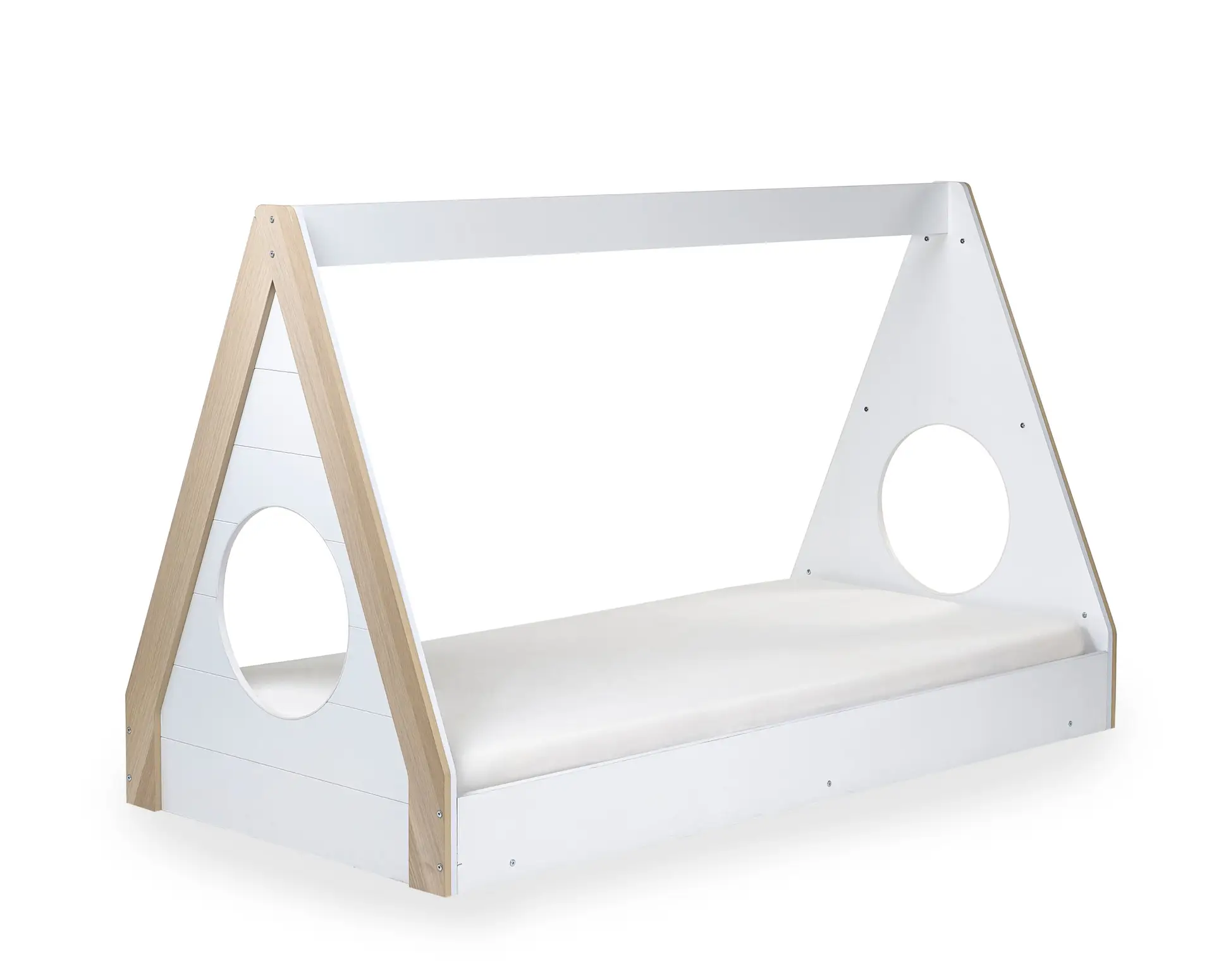 Transform your child’s bedroom into a whimsical retreat with the Festival Low Sleeper – an enchanting haven that sparks joy and fuels imagination! This teepee-style bed, with a charming, white and wood finish, offers a magical space for endless adventures and creative play. Meticulously crafted with attention to detail, the bed features a unique circle detail at the end, adding a playful touch that invites curiosity and wonder. Designed with safety and comfort in mind, the low sleeper style ensures easy access for little ones, making bedtime a breeze. Witness as each night unfolds into a magical journey, filled with dreams and boundless creativity.