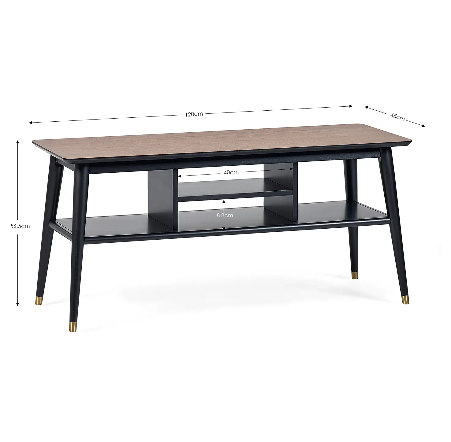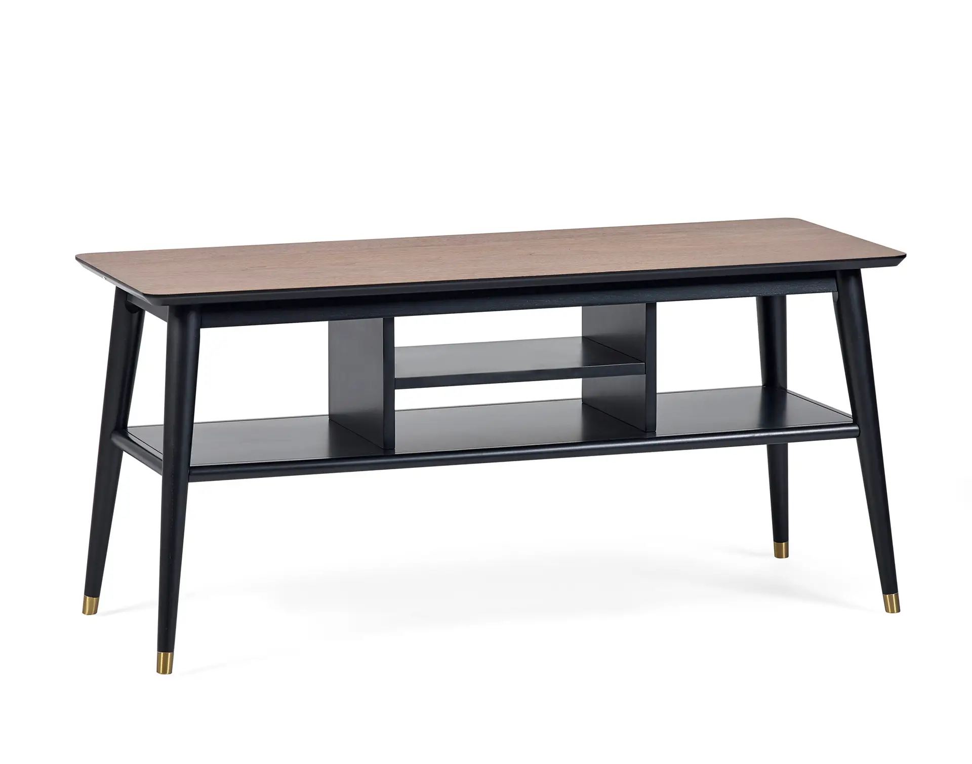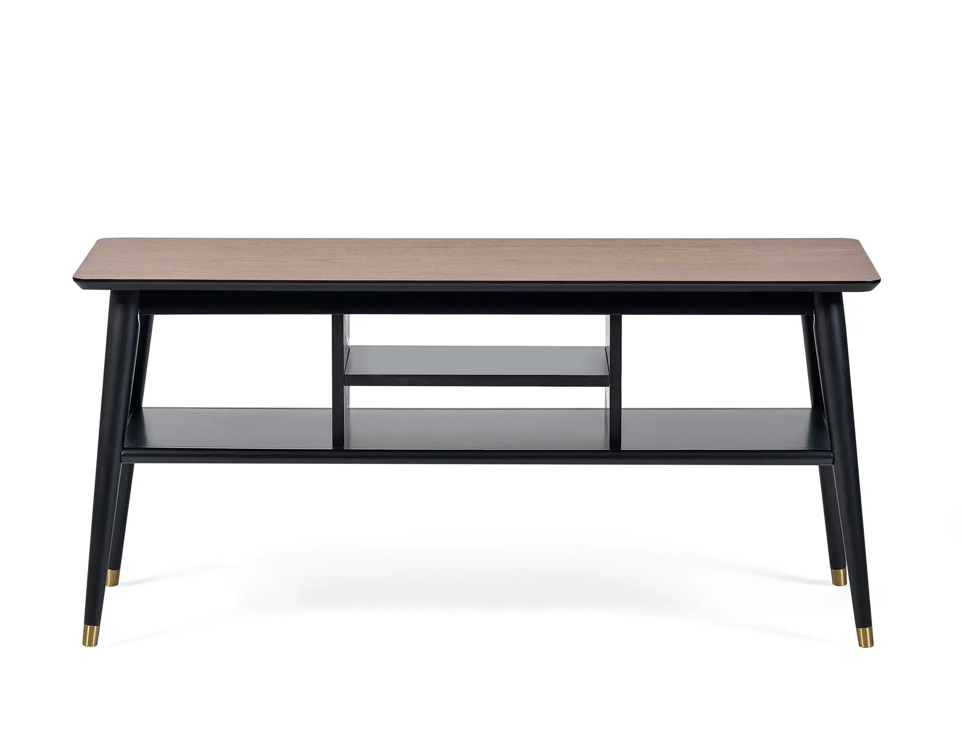 The Findlay collection combines retro design elements with a modern twist. With a walnut finish and brass tipped legs – this collection will uplift an eclectic range of décor styles. This collection includes a rectangular dining table, square dining table, coffee table, lamp table, and media unit.