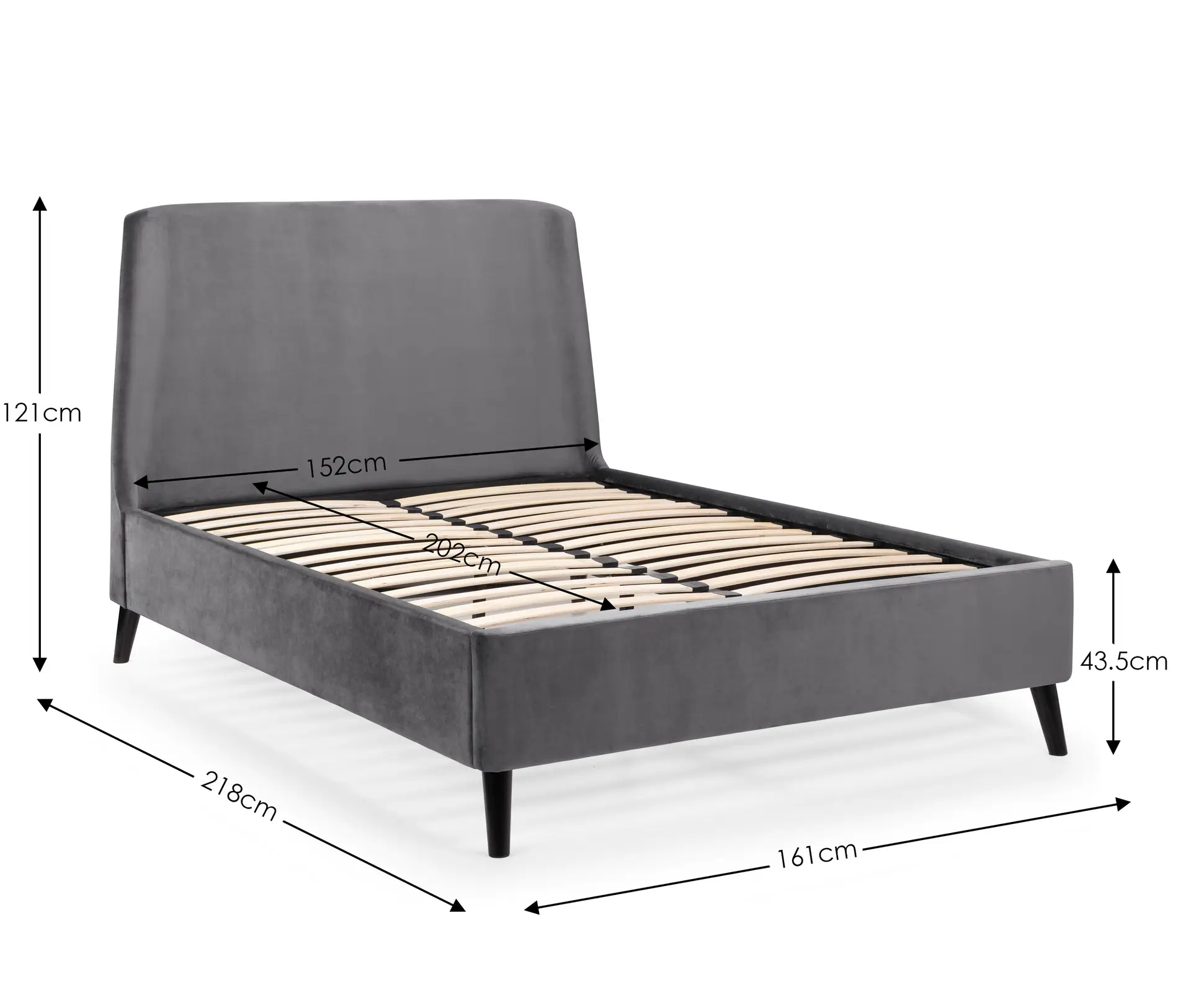 - Luxurious Design: Features a plush grey velvet fabric for a luxurious look and feel. Curved Headboard: Elegant curved headboard adds a touch of sophistication. Sturdy Construction: Made from high-quality materials ensuring durability. Comfortable Sleeping Area: Designed to provide a comfortable sleeping space. Elegant Look: Adds a touch of elegance to any bedroom decor.