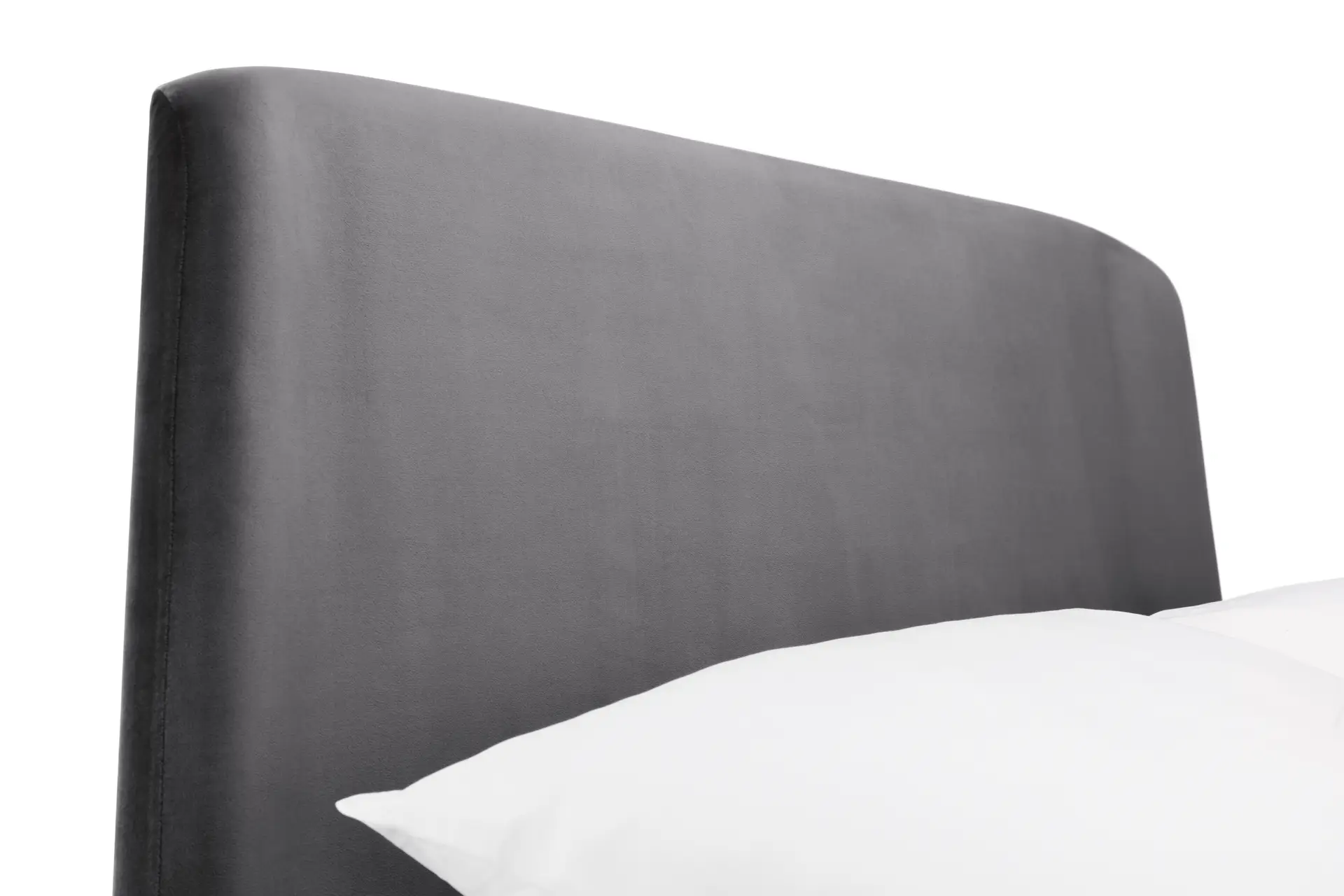 Featuring a gorgeous, curved headboard, the Frida bed exudes elegance and comfort. The black contrasting legs paired with the smooth velvet gives a modern look – and is likely to be the statement piece in any bedroom. It is also available in an ottoman version, perfect for those with smaller bedroom areas as it provides that extra storage space. Available in two beautiful shades of teal and grey.