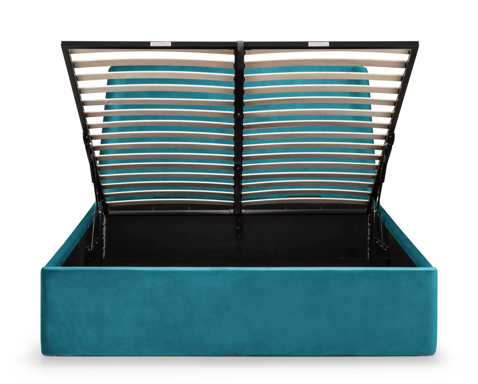 Featuring a gorgeous, curved headboard, the Frida bed exudes elegance and comfort. The black contrasting legs paired with the smooth velvet gives a modern look – and is likely to be the statement piece in any bedroom. It is also available in an ottoman version, perfect for those with smaller bedroom areas as it provides that extra storage space. Available in two beautiful shades of teal and grey.