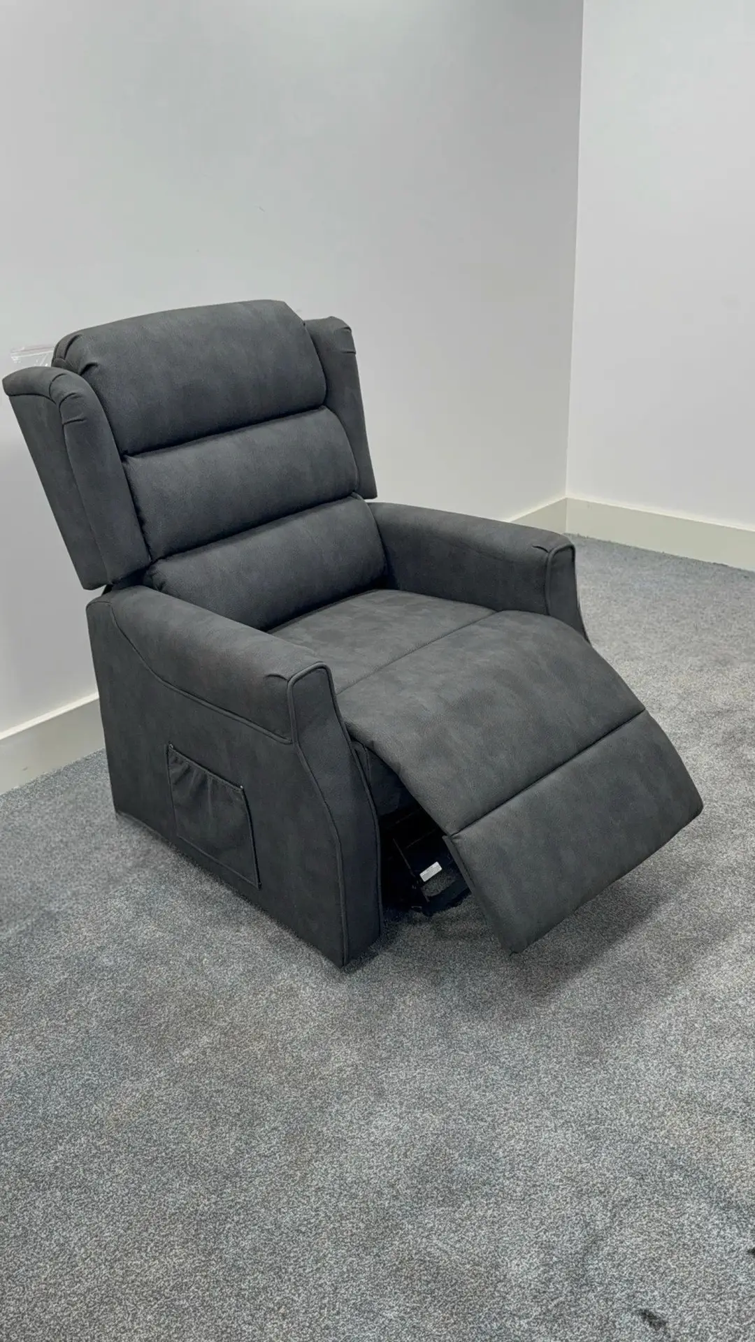 Brand New Charcoal Grey Endurance Fabric Rise & Recliner Chair – Nikoleta Model